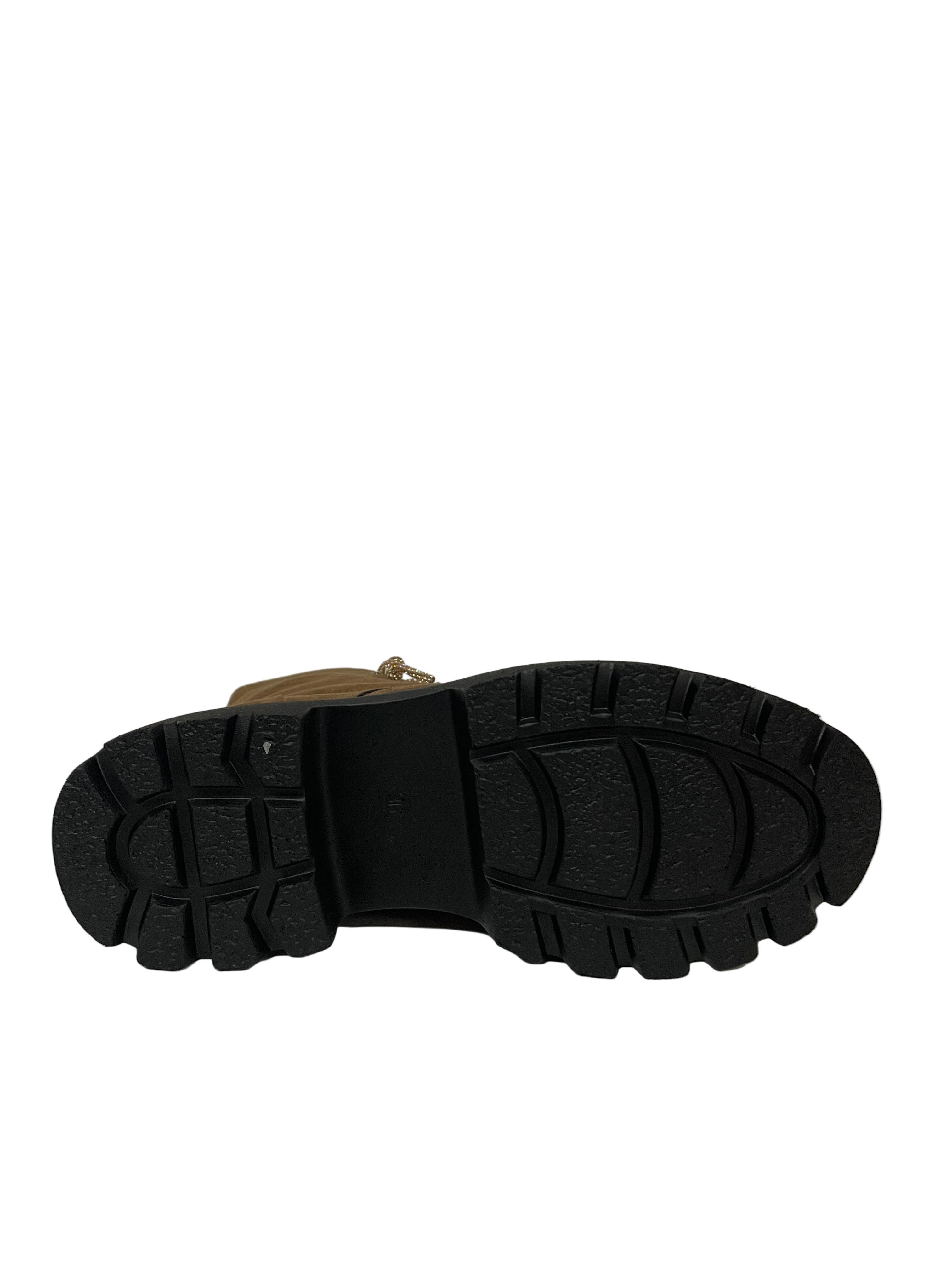 Contrasto Accattivante: La tomaia calda e terrosa è abbinata a una suola carrarmato spessa e completamente nera, creando un forte contrasto di colore.