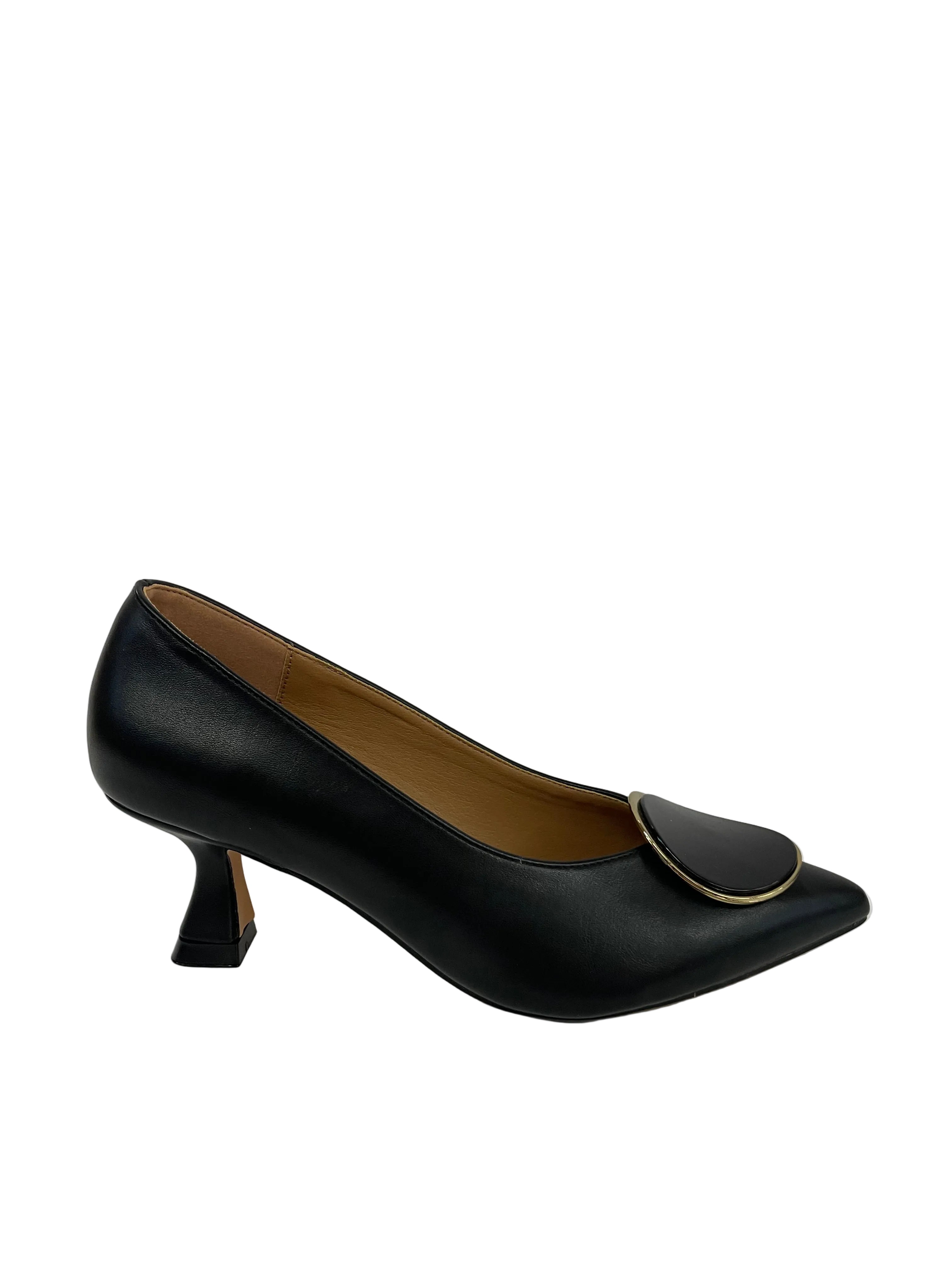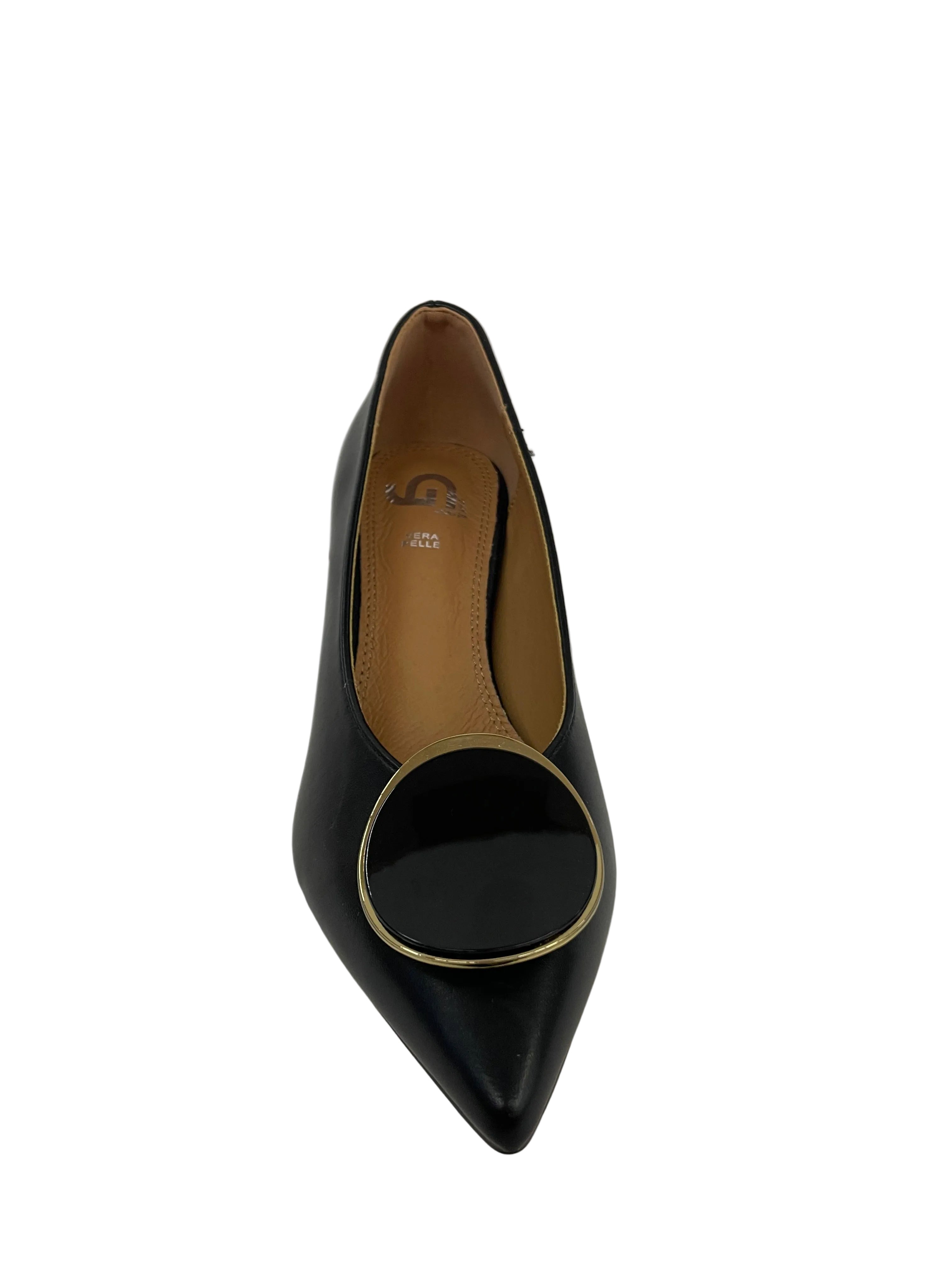 • Dettaglio Luminoso: Una fibbia decorativa oro e smalto sul puntale aggiunge un tocco di eleganza discreta ma d'impatto.
