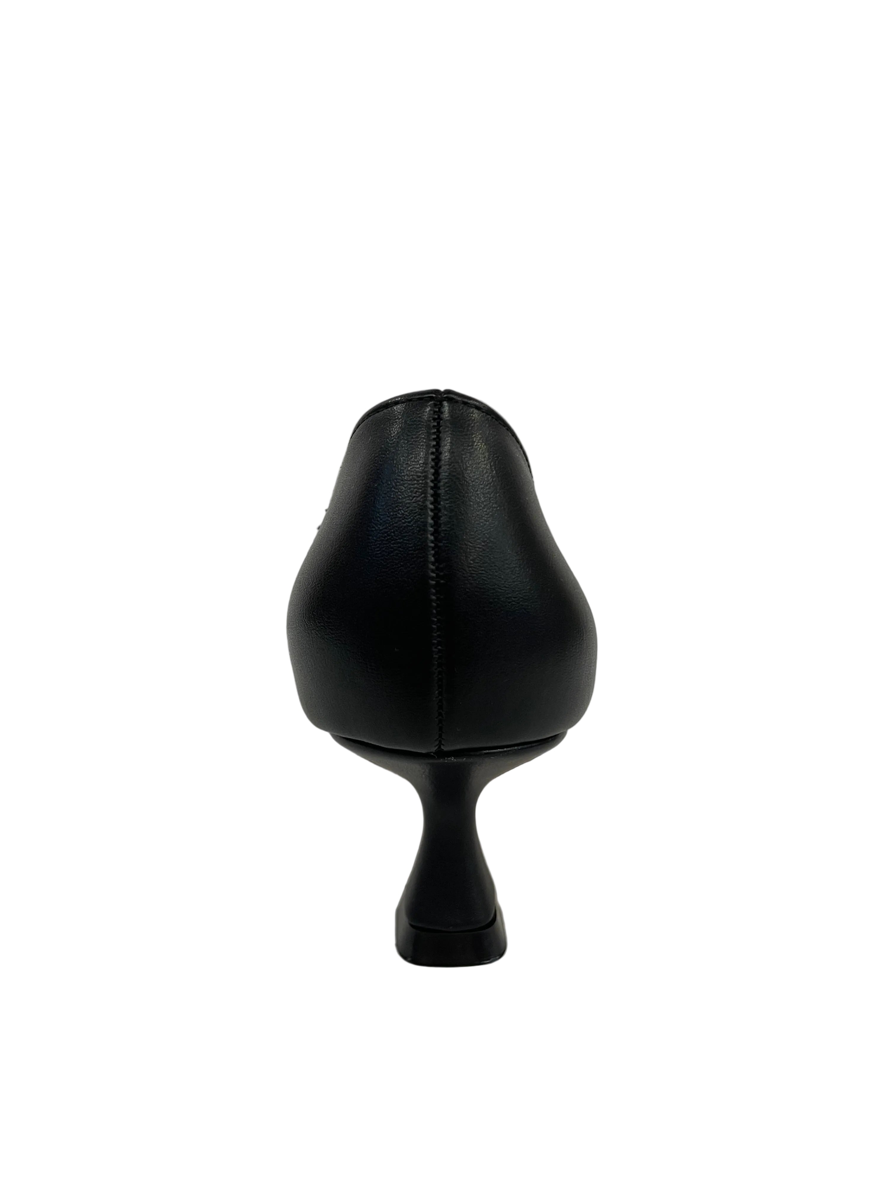• Tacco Sculpturale: L'audace tacco a clessidra da 6,5 cm, stabile e moderno, slancia la figura con un tocco contemporaneo.