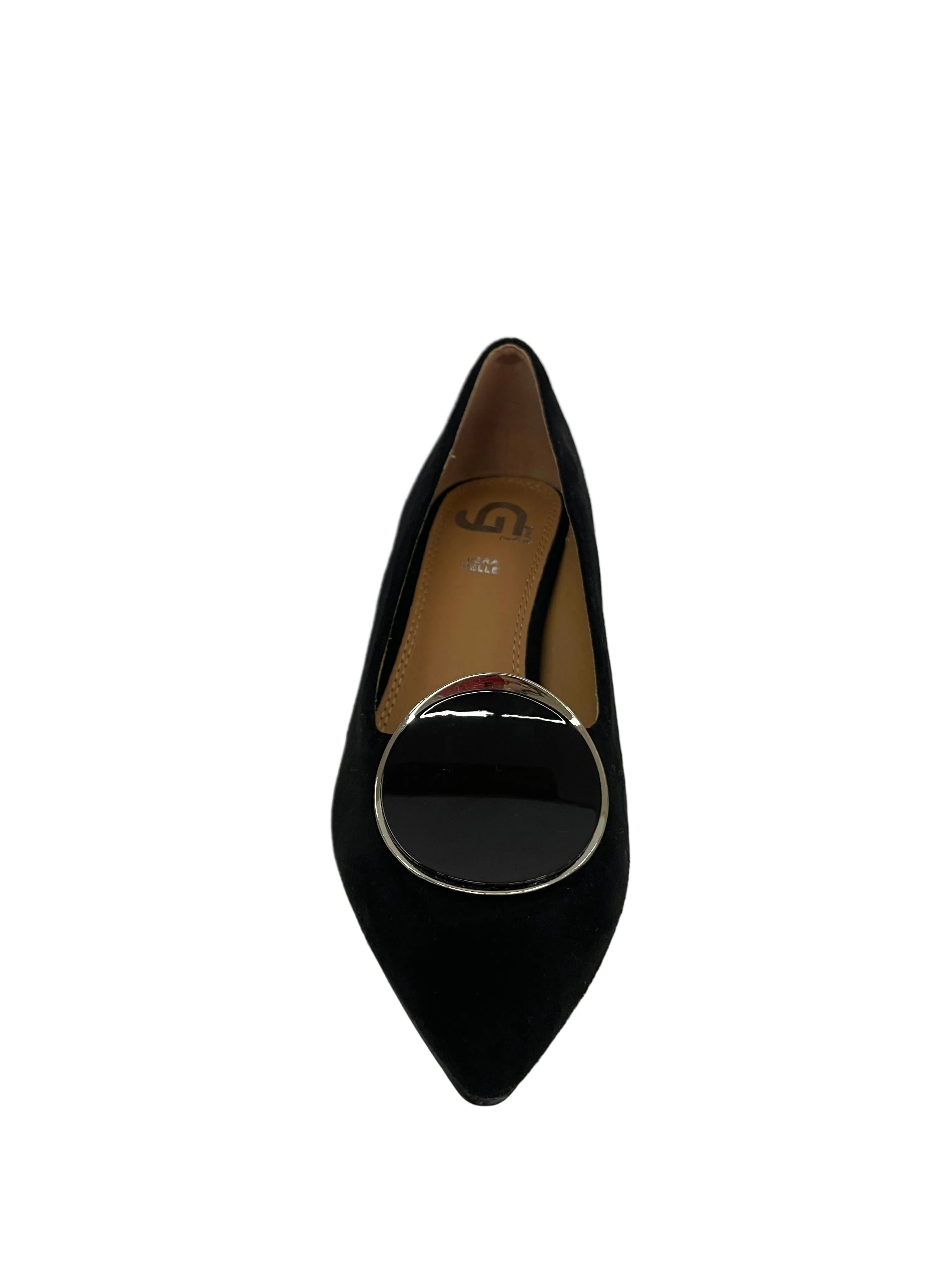 Il Dettaglio: La linea pulita a punta è arricchita da una fibbia metallica dalla forma contemporanea, che aggiunge un tocco di lucentezza sofisticata.