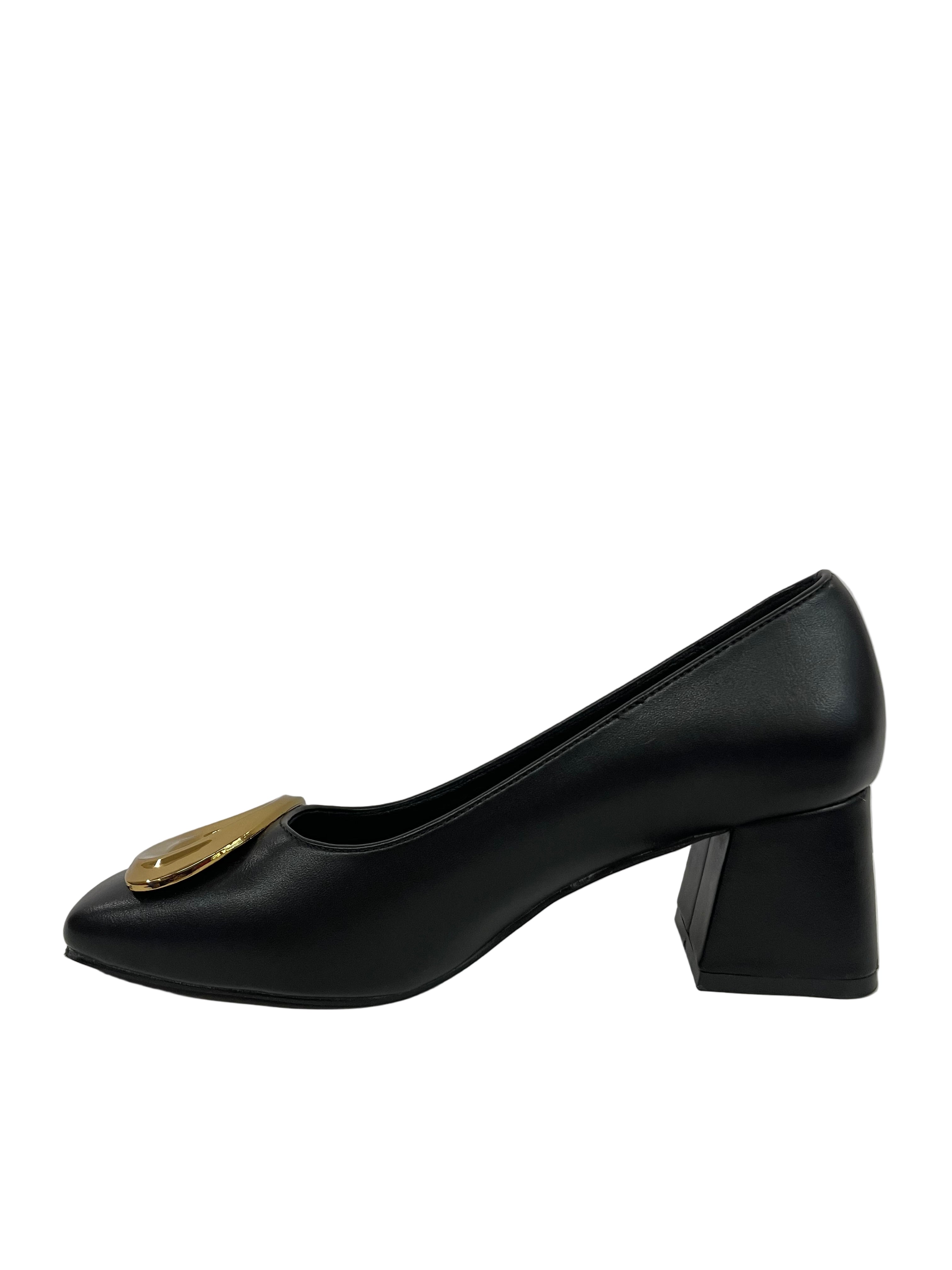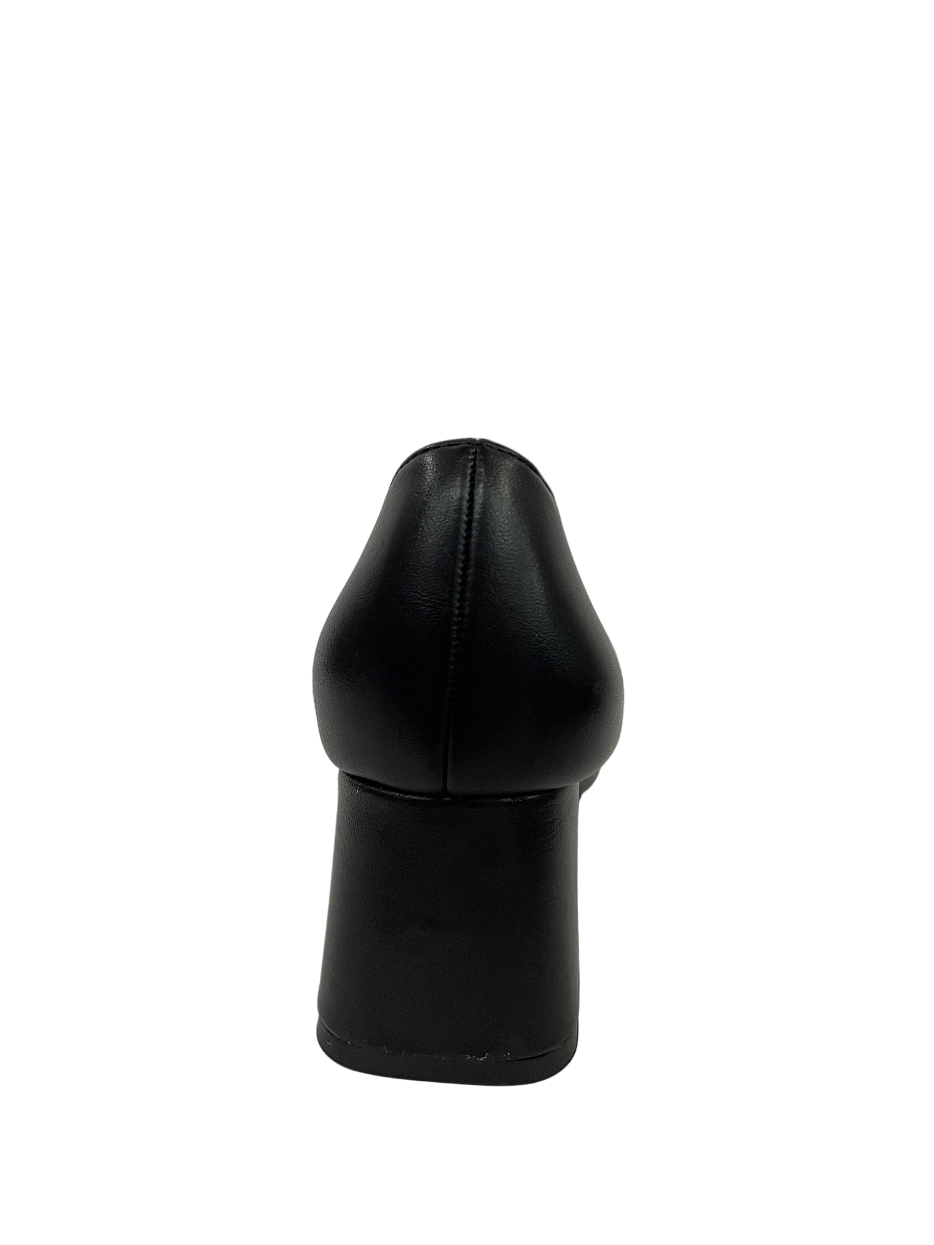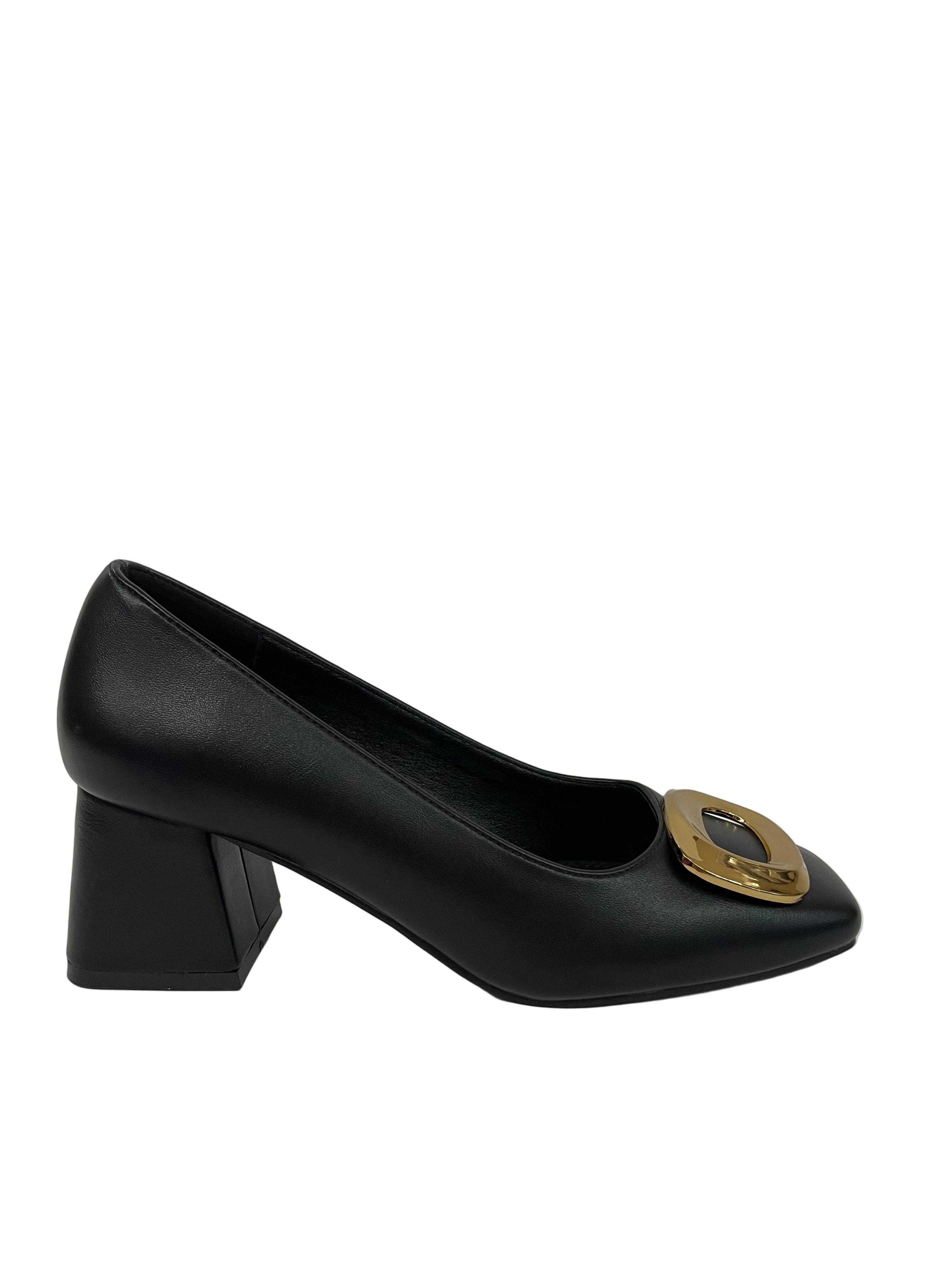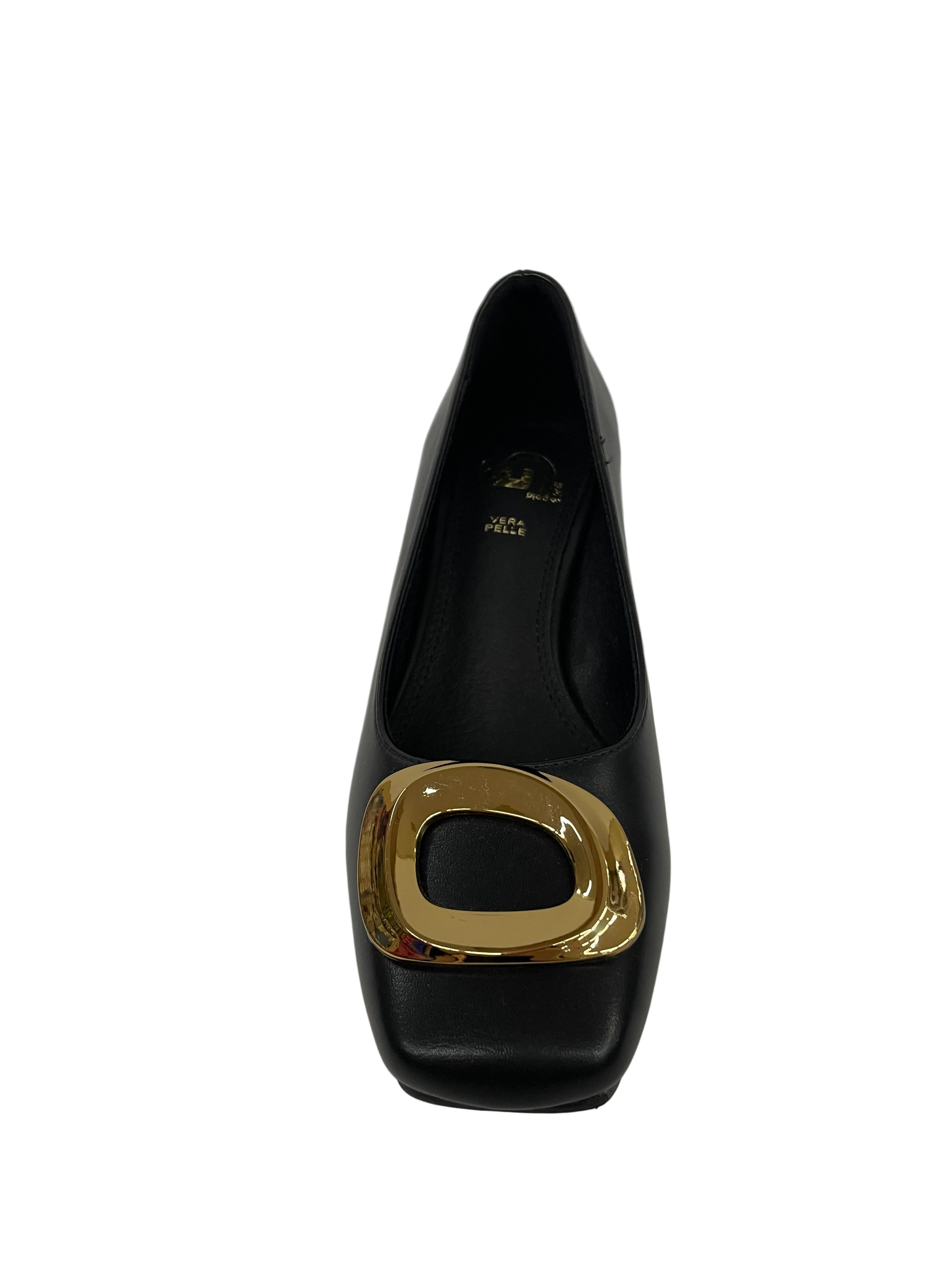 Design Essenziale: La tomaia in pelle nera è liscia e avvolgente, con una punta squadrata che strizza l'occhio alle tendenze contemporanee.