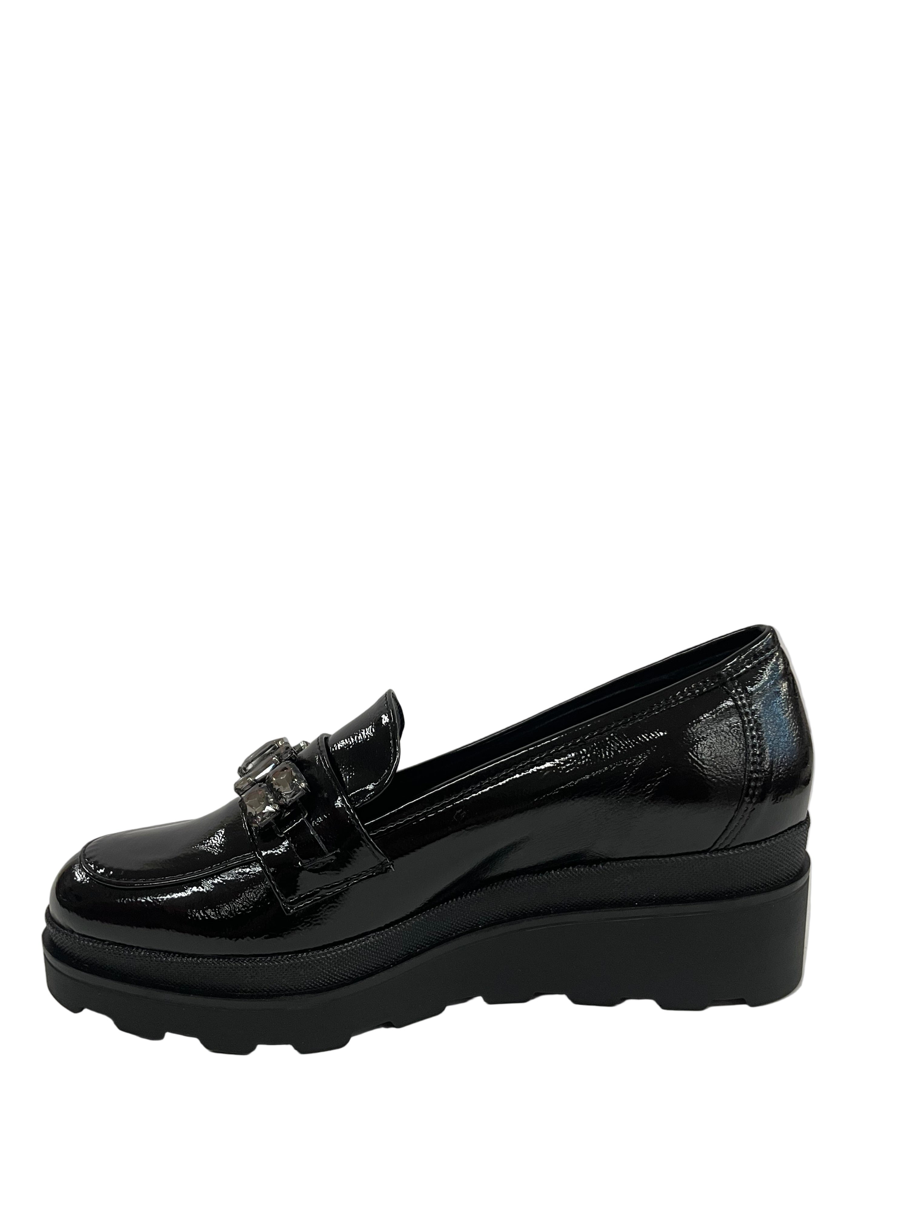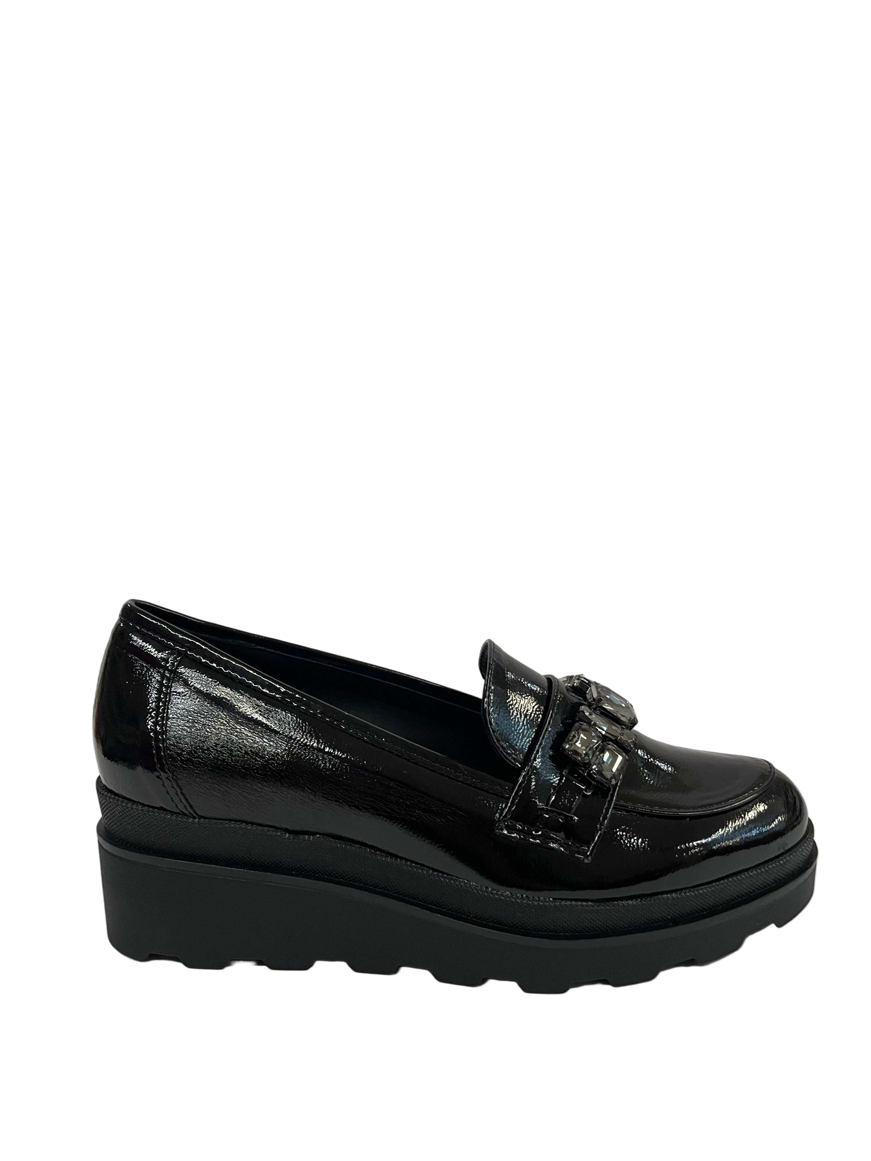 Materiale Tomaia: Ecopelle con finitura vernice lucida di alta qualità.