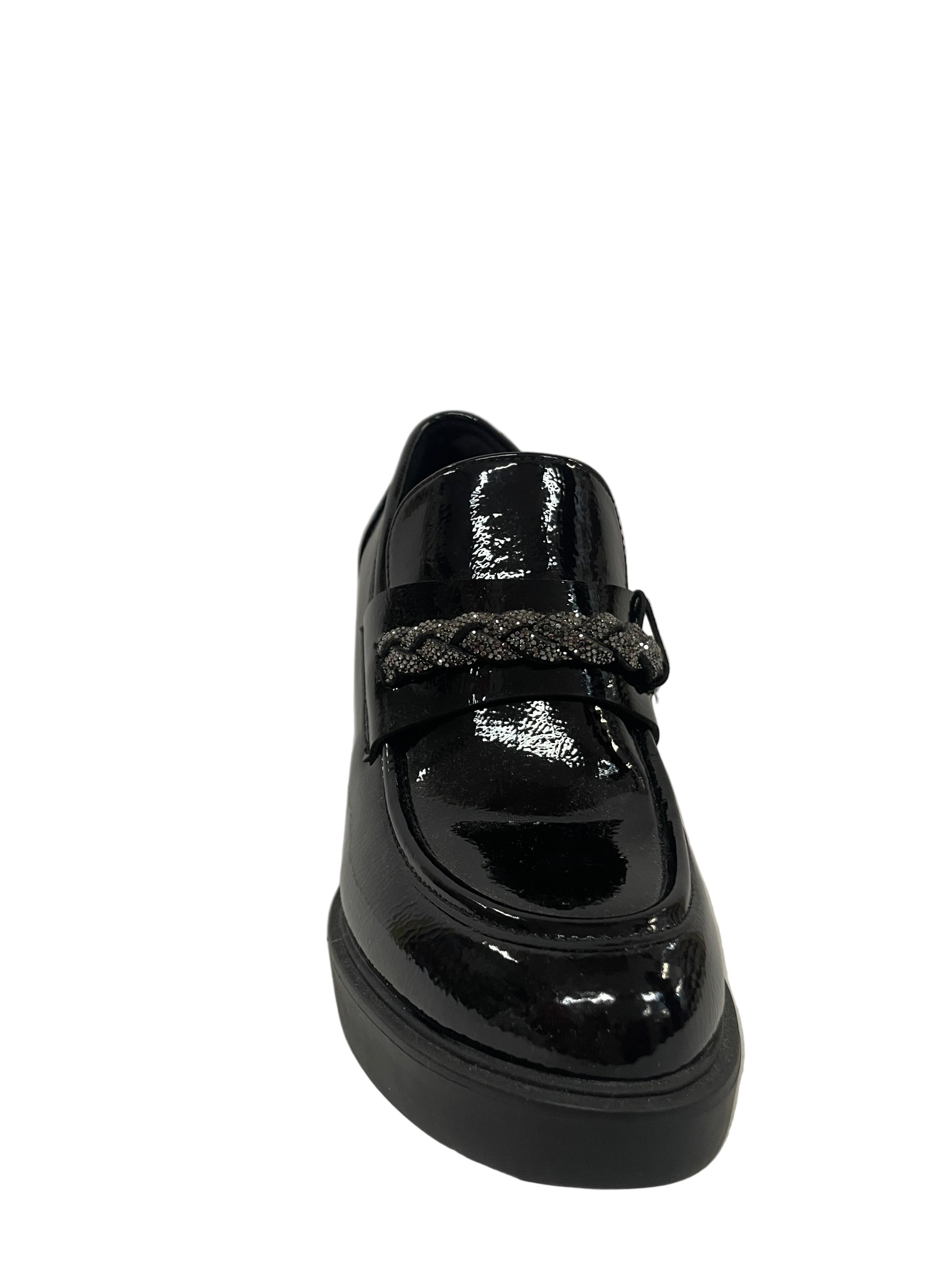 Dettaglio Principale: Fascia decorativa sulla tomaia, ricoperta interamente da una fila di strass neri/canna di fucile per un tocco glamour.