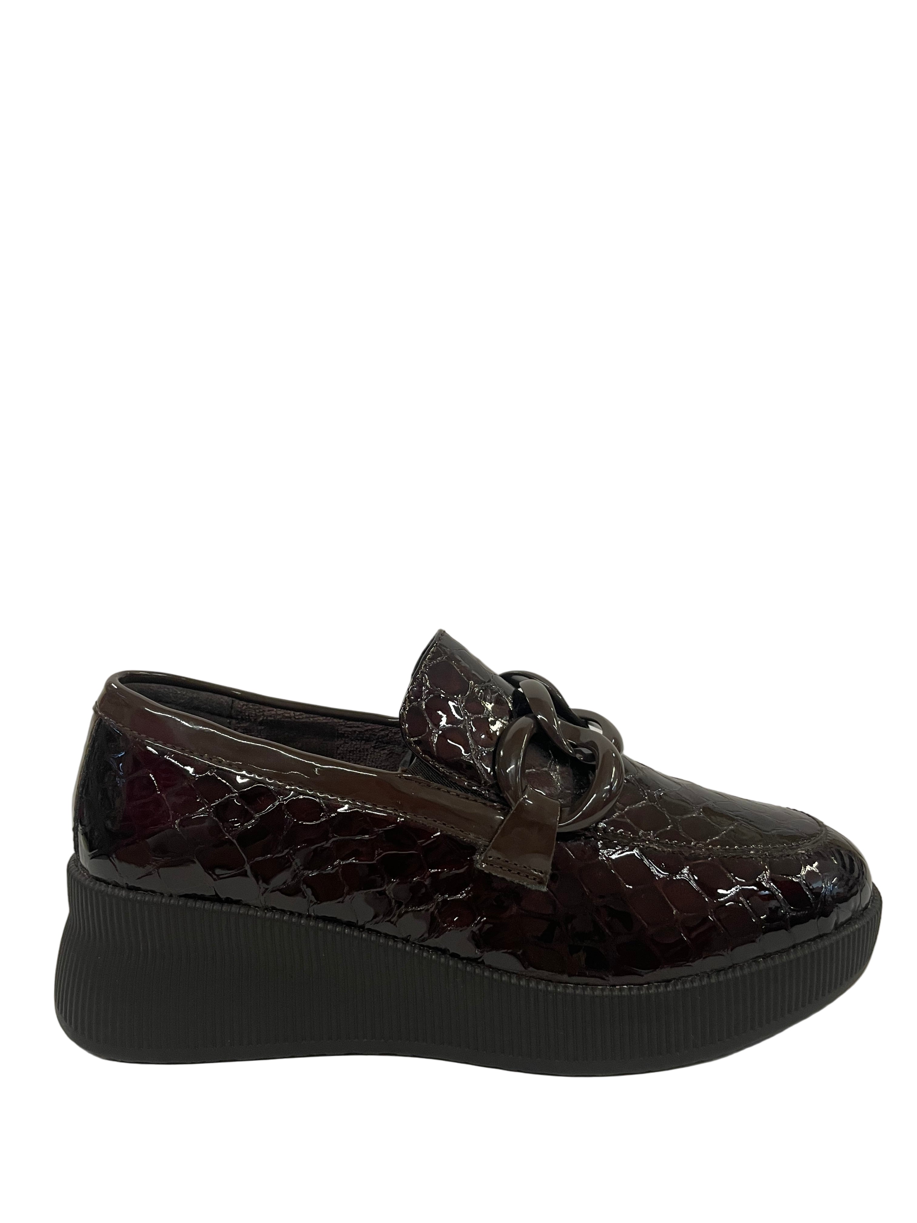 Materiale Tomaia: Vera pelle con finitura vernice lucida e stampa effetto coccodrillo.