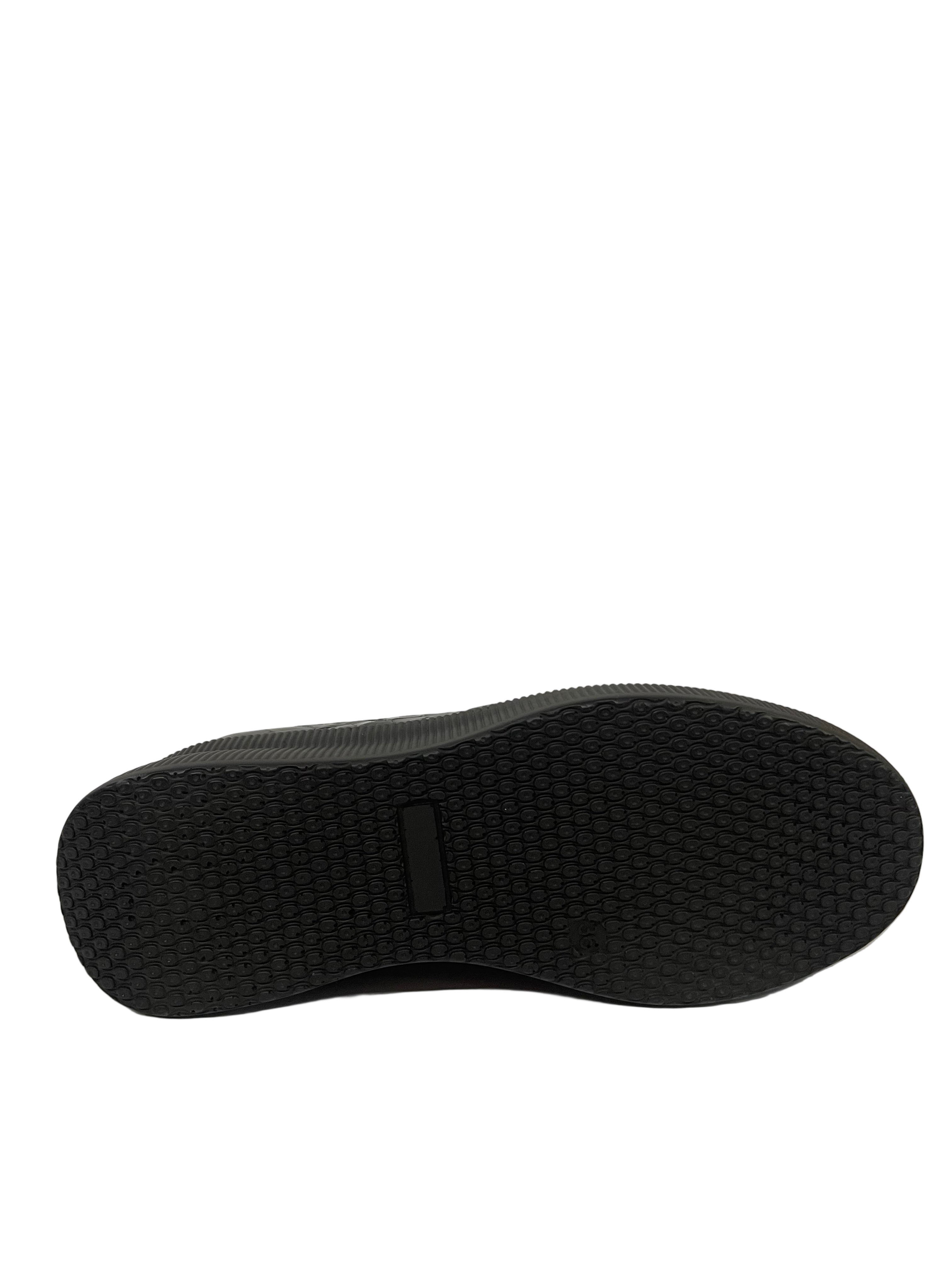 Suola: Platform (zeppa) robusta di colore nero, con superficie laterale a coste, che assicura un'ottima aderenza e un boost di altezza.