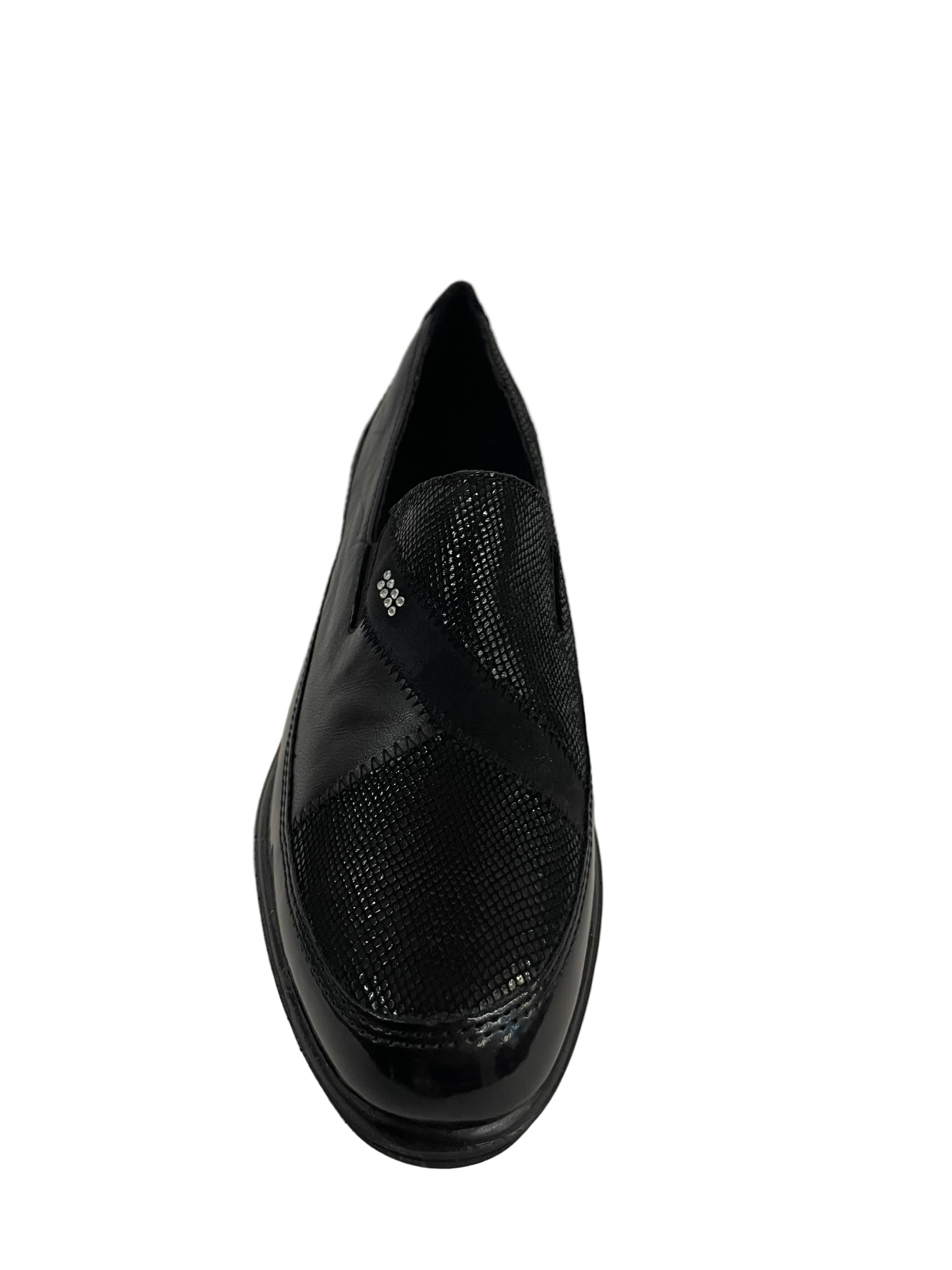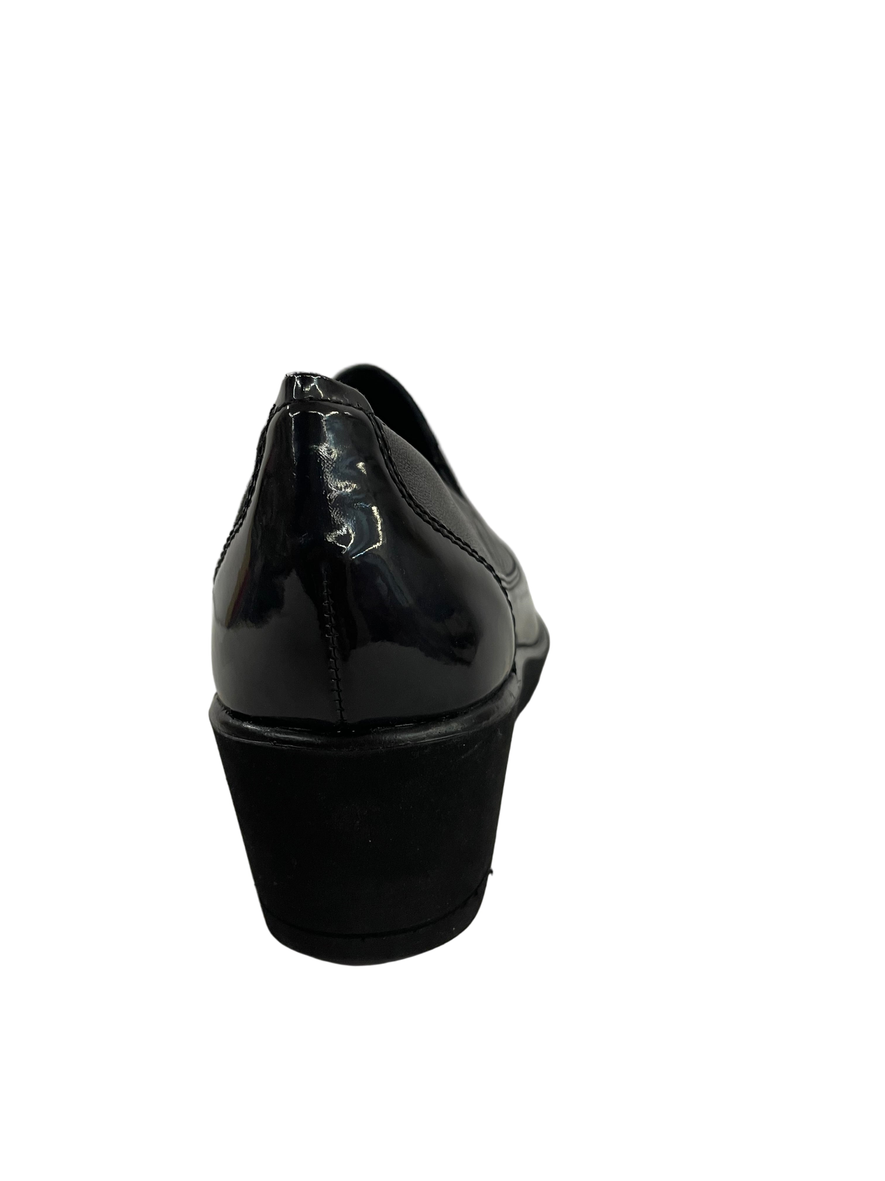 • Contrasti Tattili: La tomaia combina sapientemente pelle liscia e pannelli in finta pelle verniciata lucida, creando un gioco di texture che cattura la luce.