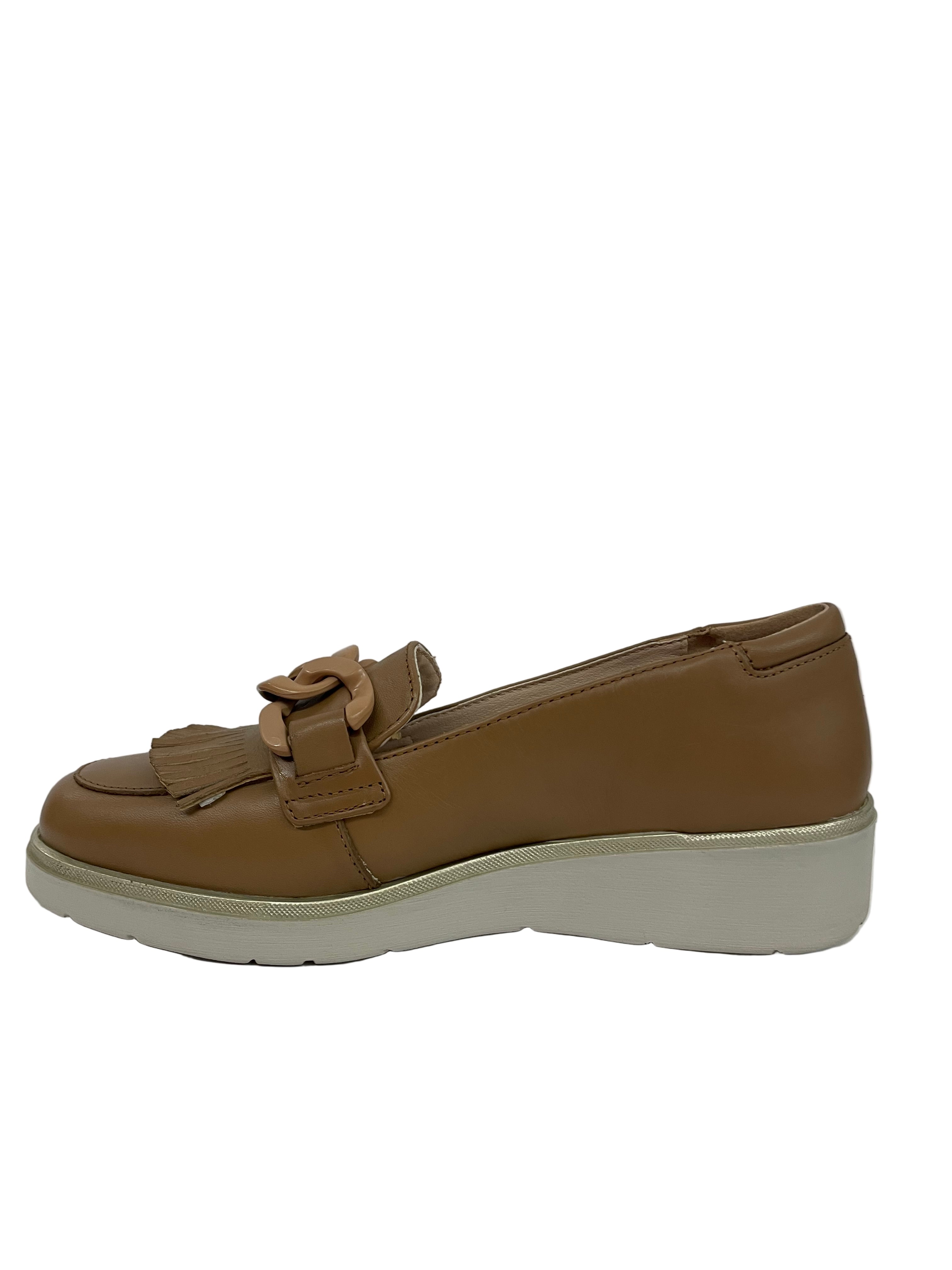 Questo mocassino in pelle color cuoio incarna l'eleganza rilassata e il comfort duraturo.