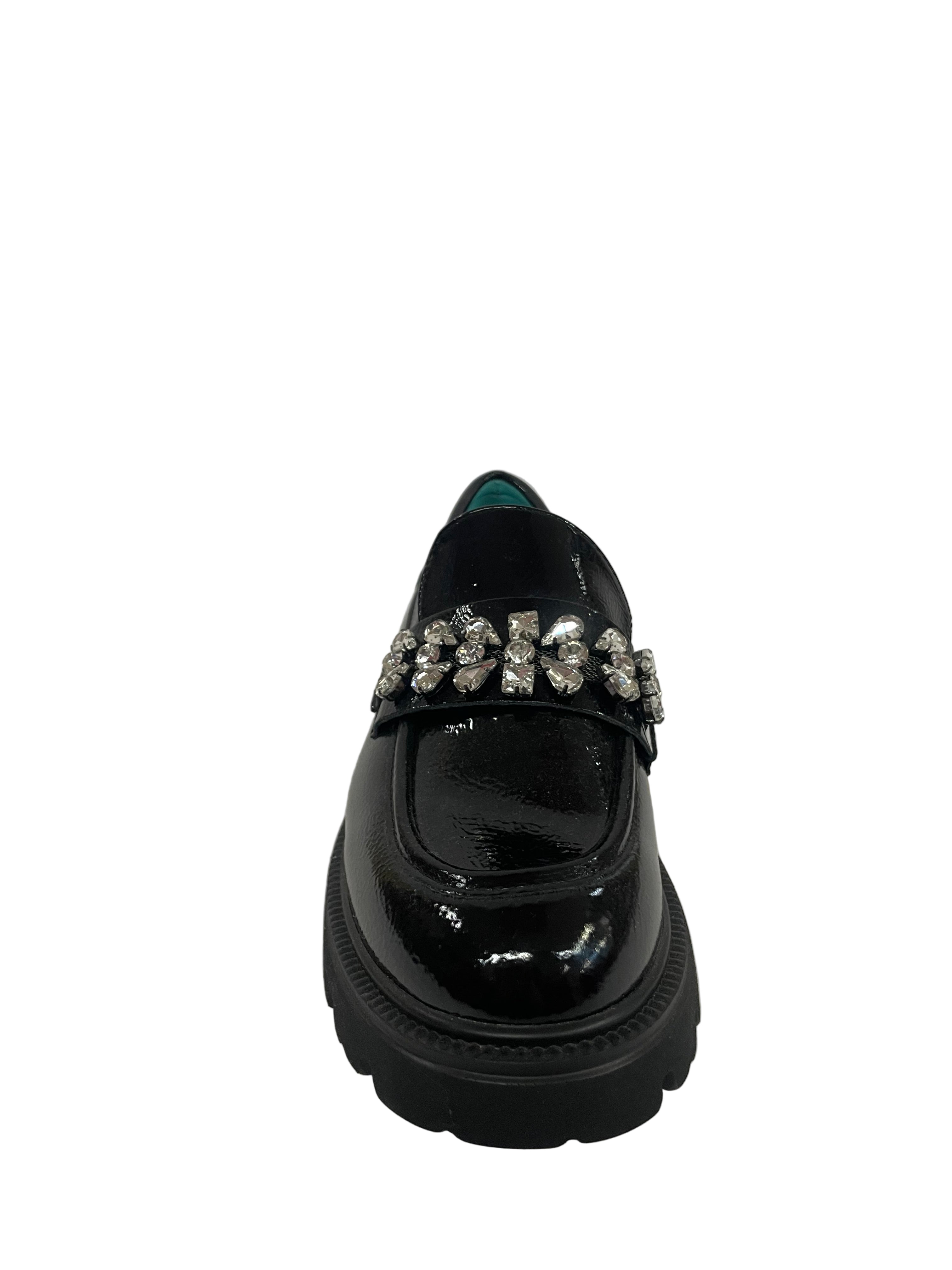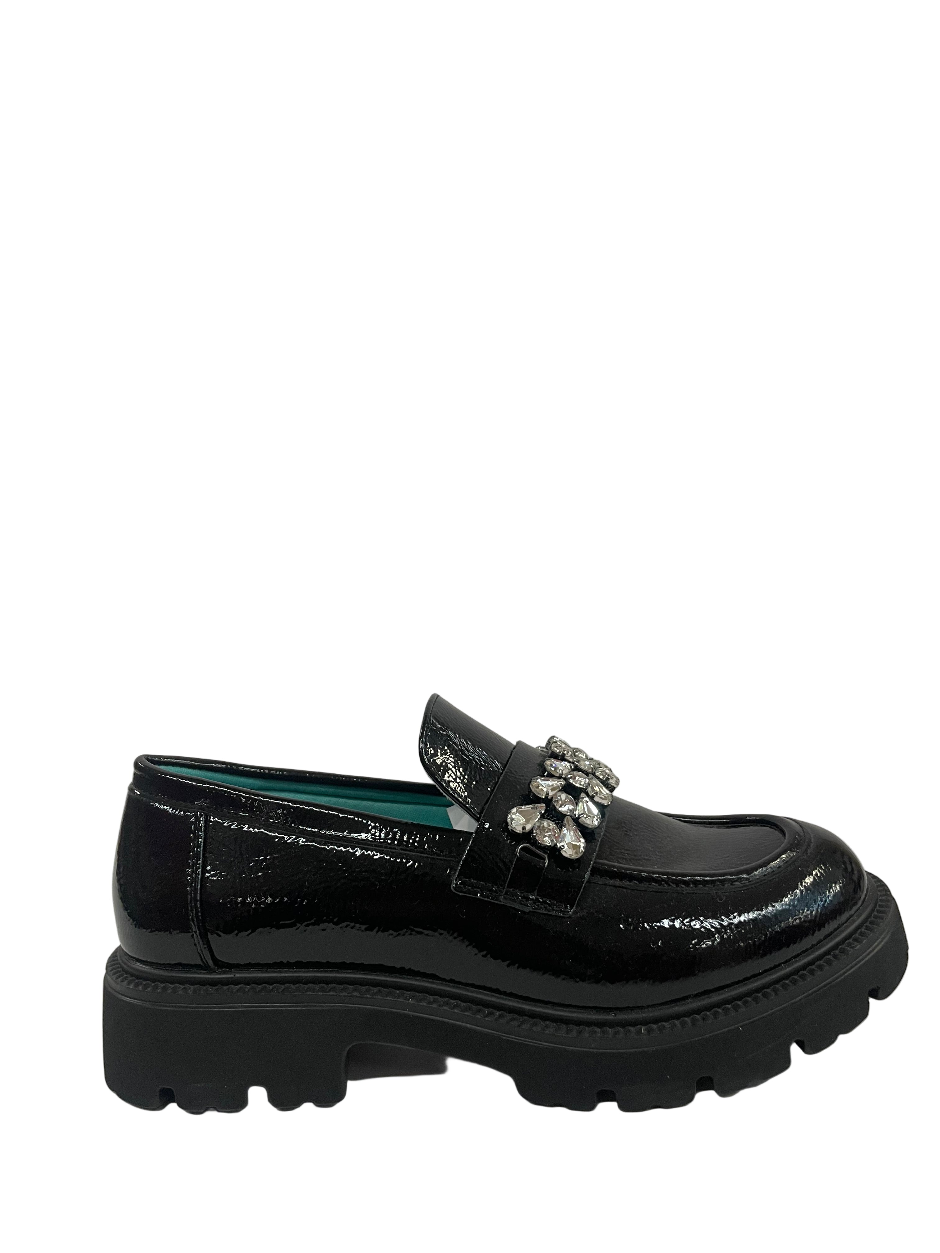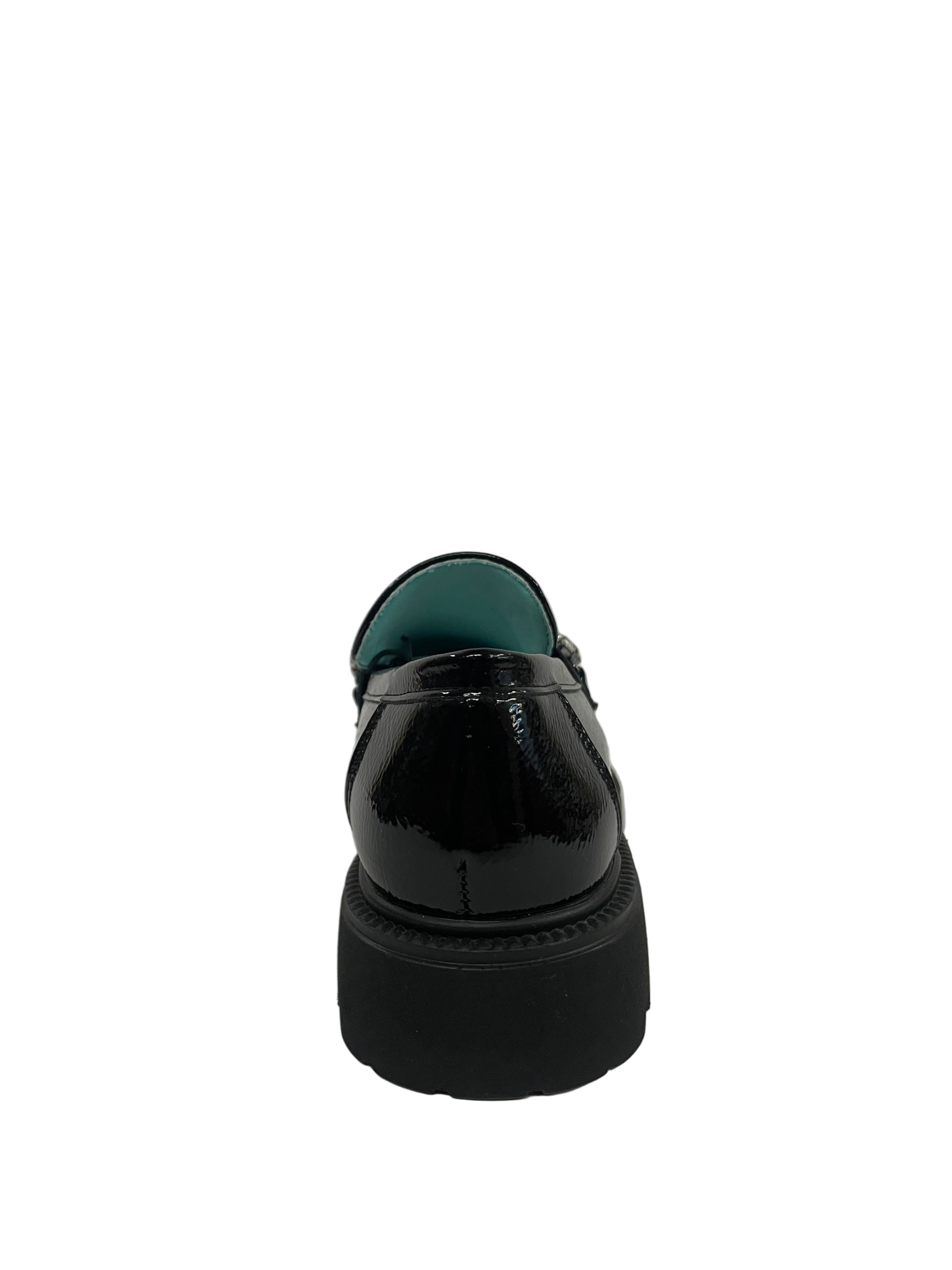 Materiale Tomaia: Ecopelle/Sintetico con finitura vernice lucida di colore nero.