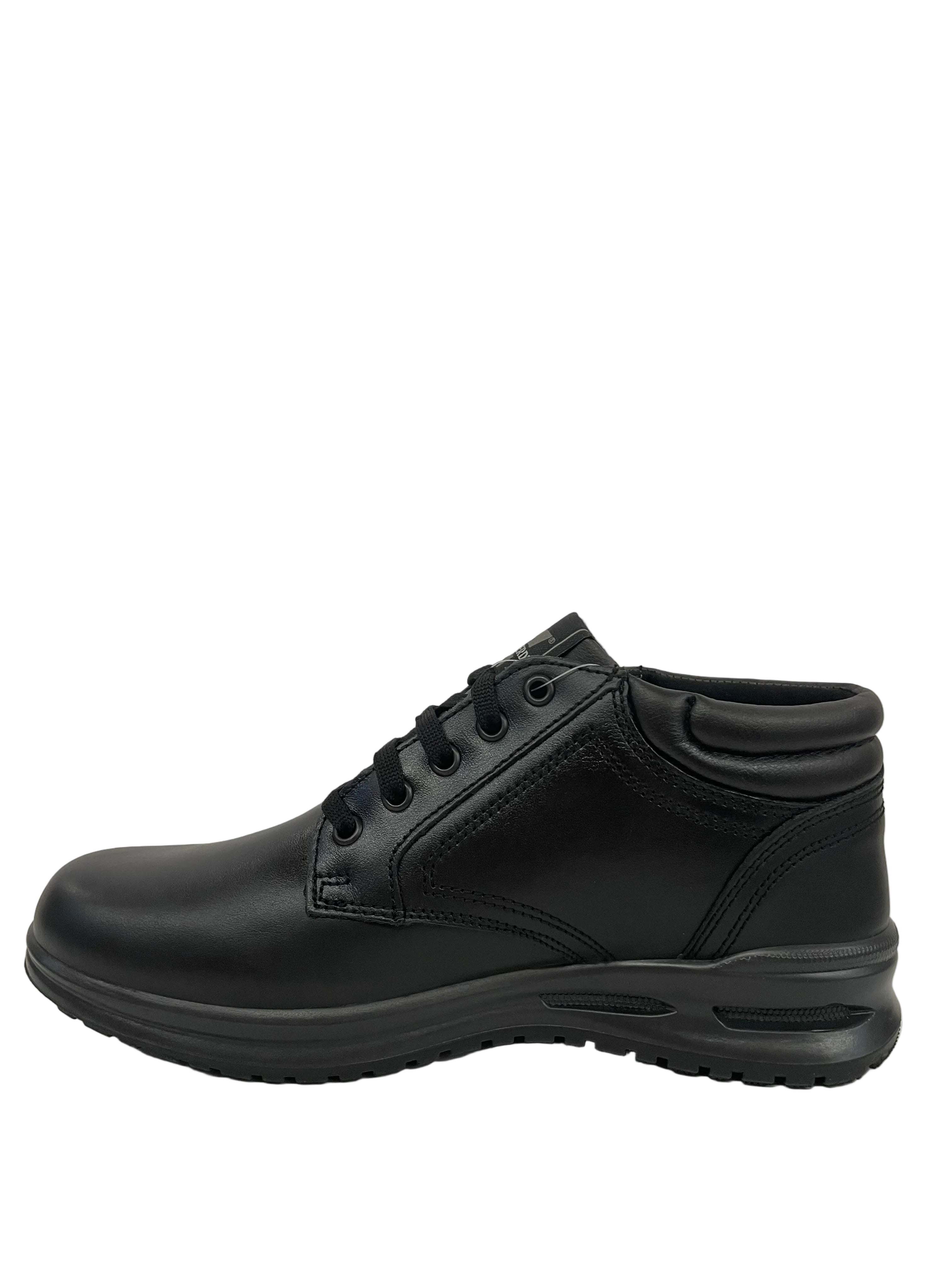 Questo scarponcino Valleverde in pelle nera unisce eleganza urbana e resistenza tecnica. La caratteristica distintiva è la membrana interna Valletex, che rende la scarpa impermeabile e traspirante, ideale per affrontare pioggia e freddo.