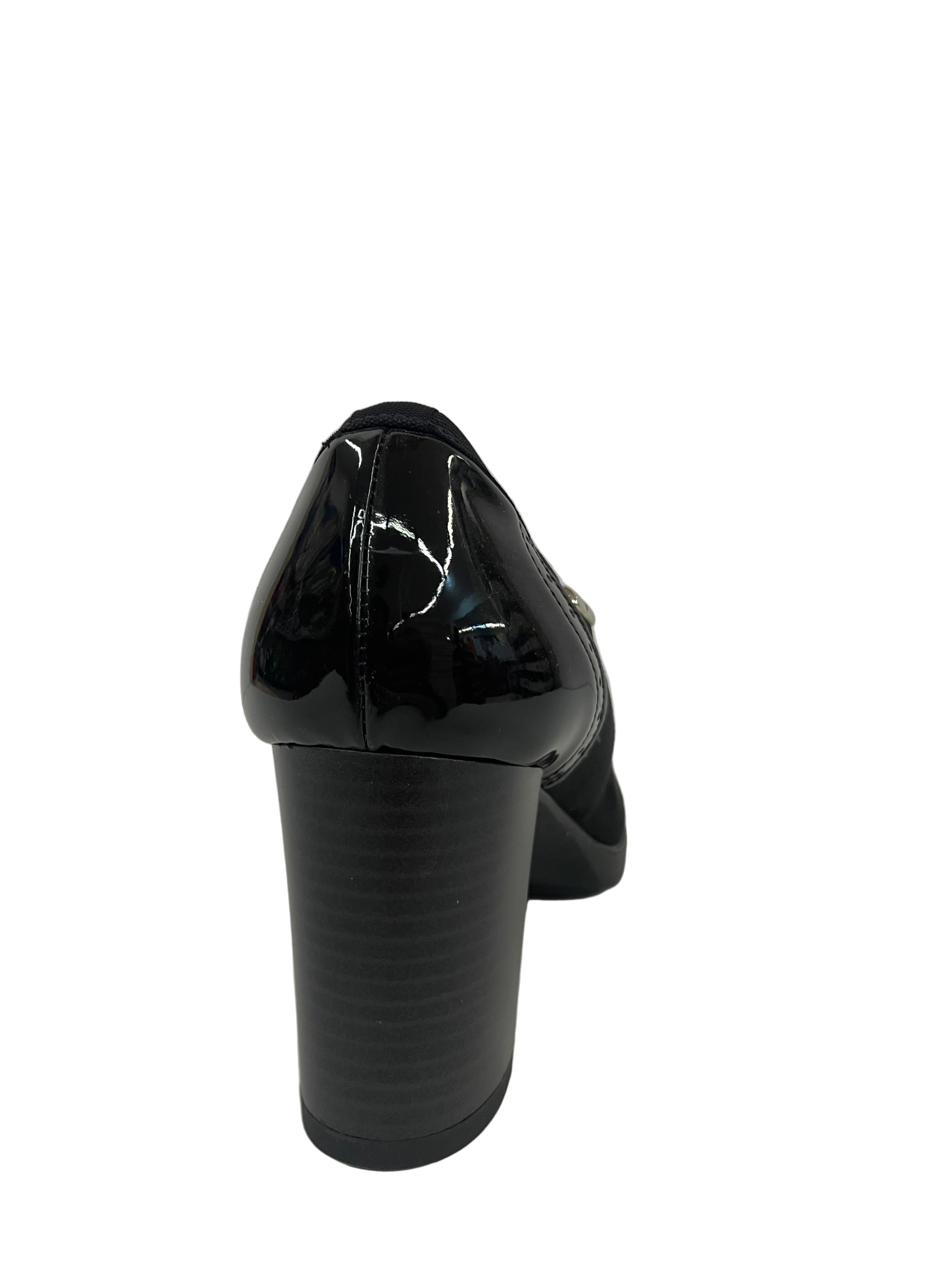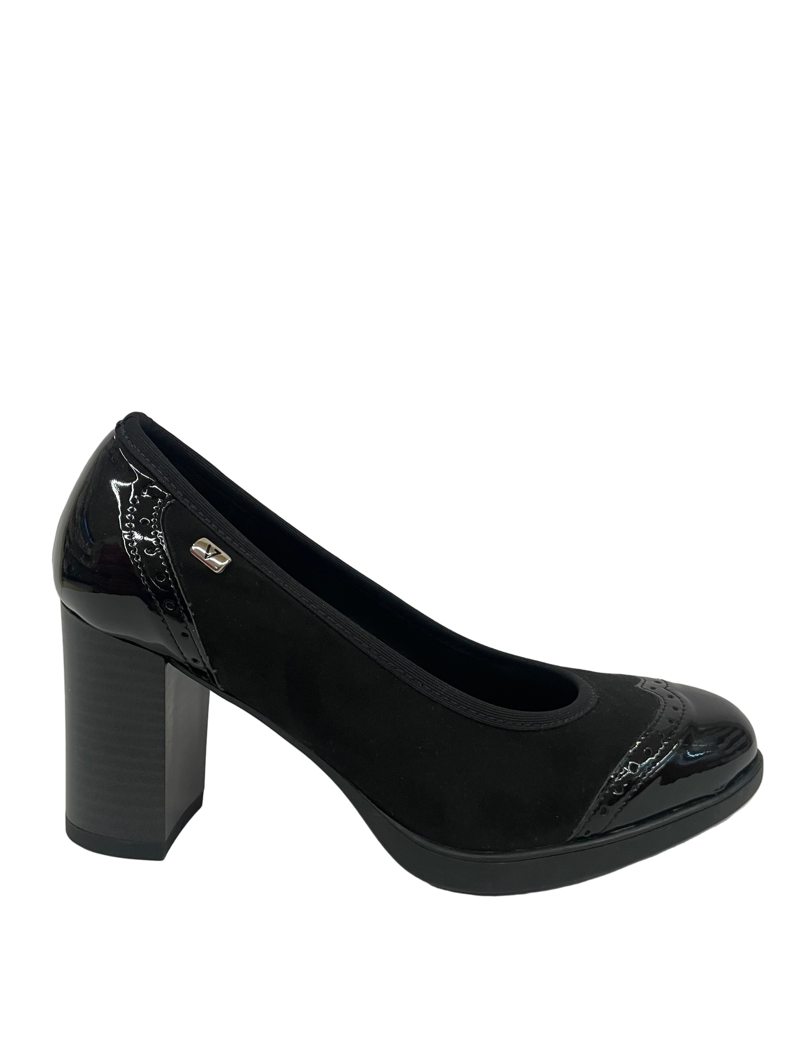Materiali: Mix di camoscio/scamosciato (o tessuto simile) sul corpo della scarpa e pelle verniciata lucida sul tallone e sulla punta.