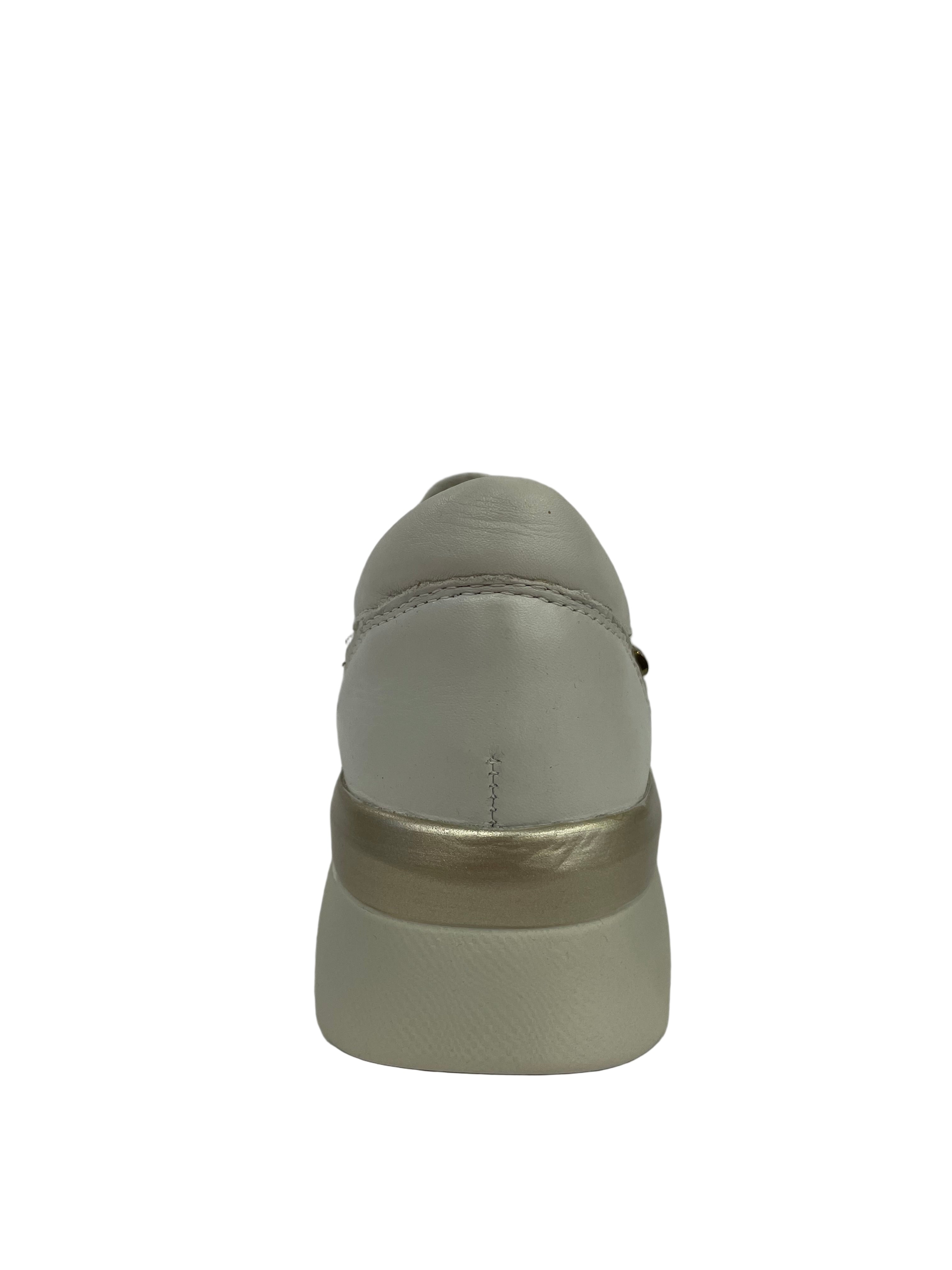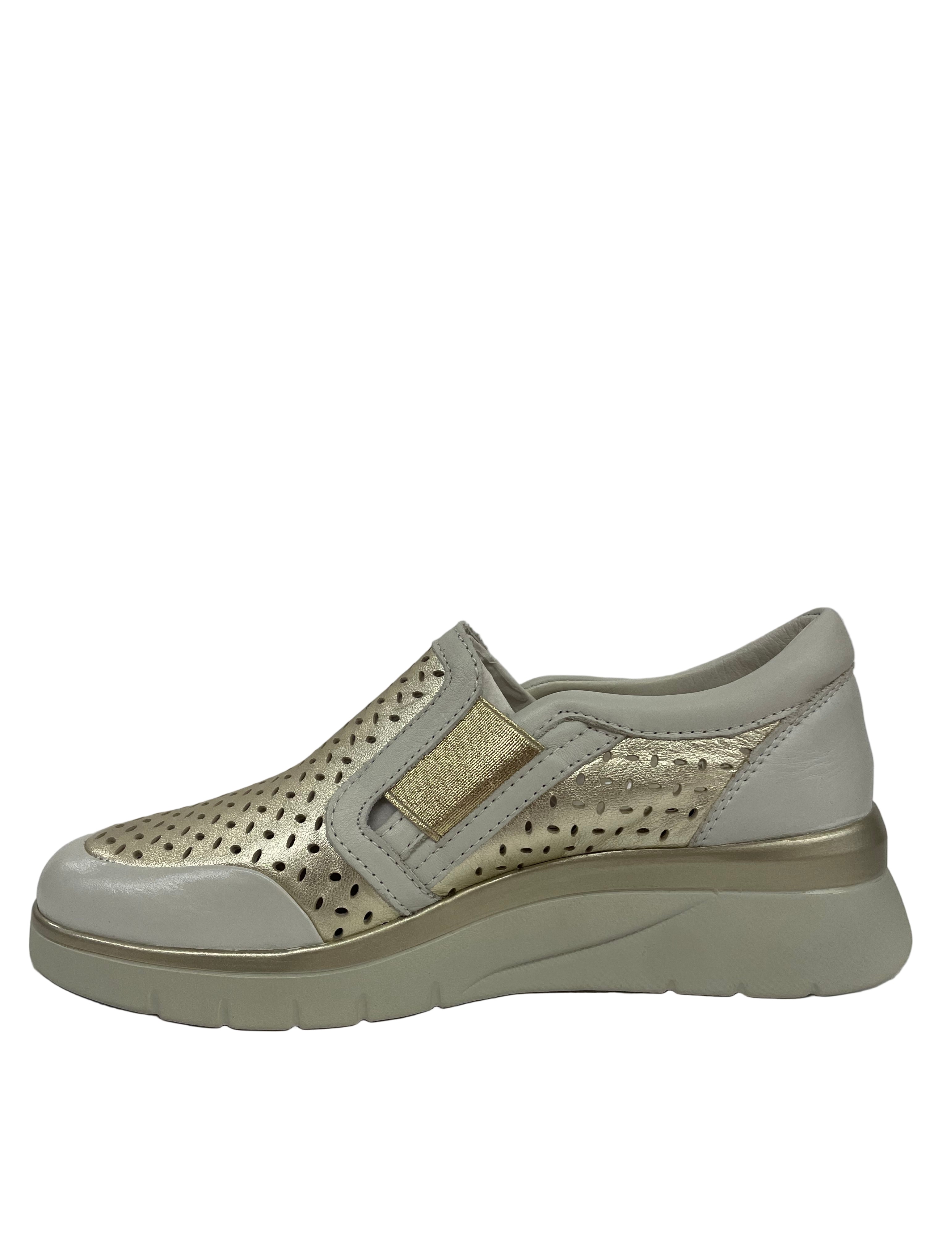 • Design Ispirato alla Luce: Una tomaia che combina l'eleganza del bianco/crema con l'accento chic dell'oro metallizzato, creando un effetto visivo luminoso e sofisticato.