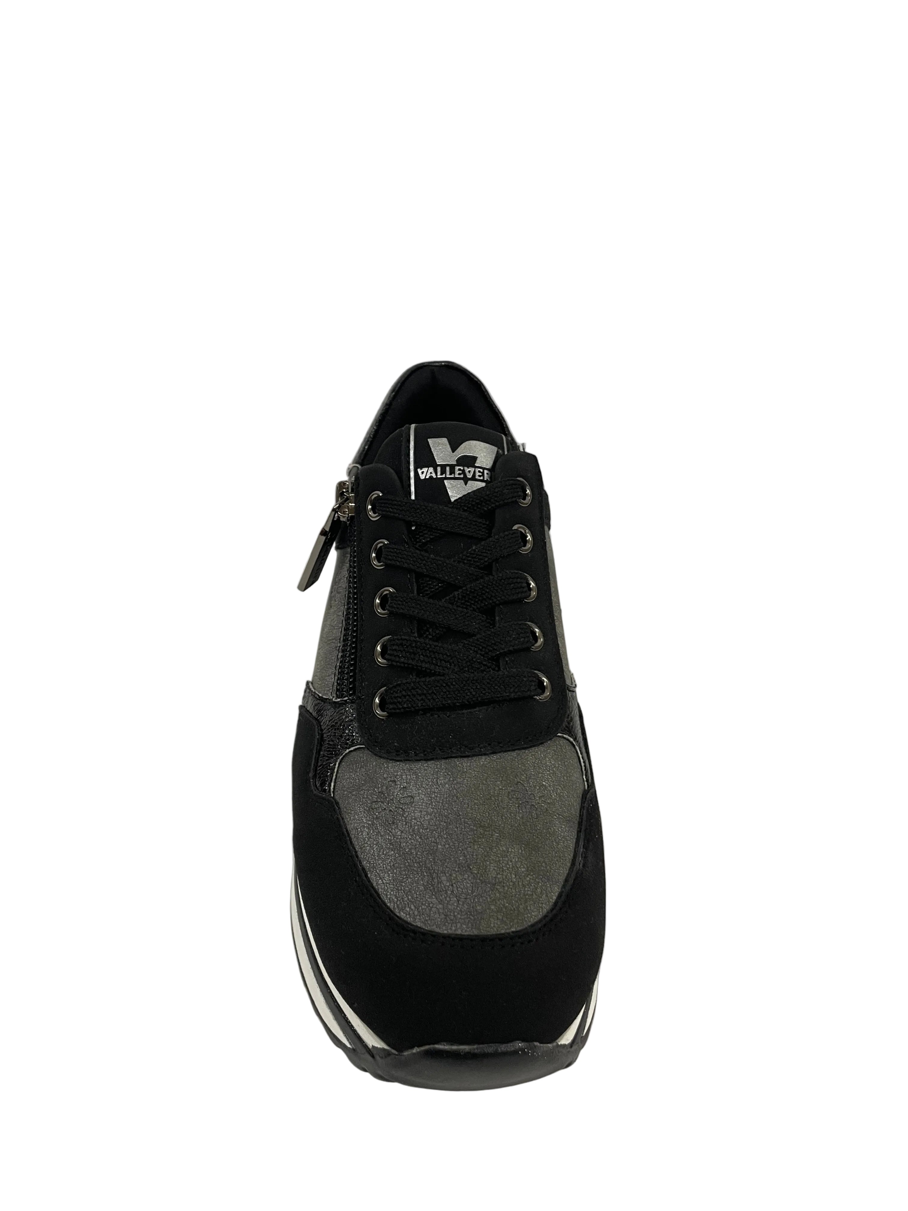 Il design è arricchito da un mix di materiali, dove spiccano gli inserti laminati color oro con un delicato motivo floreale in rilievo. La pratica cerniera laterale color oro, oltre ai lacci, aggiunge un tocco sofisticato e facilita la calzata. Dettagli in metallo dorato sul tallone completano il look.