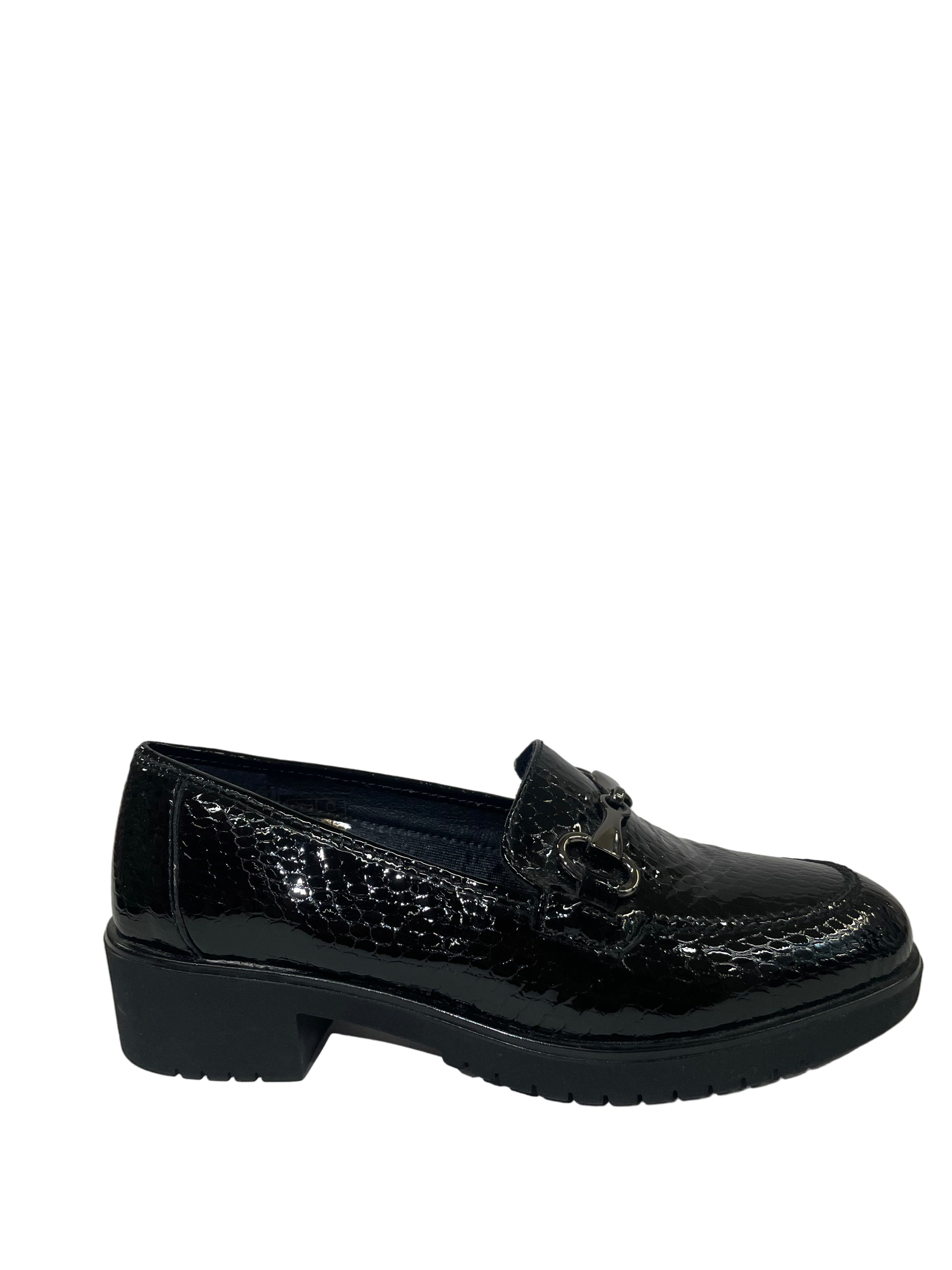 Materiale tomaia: Similpelle lucida con texture effetto pitonato