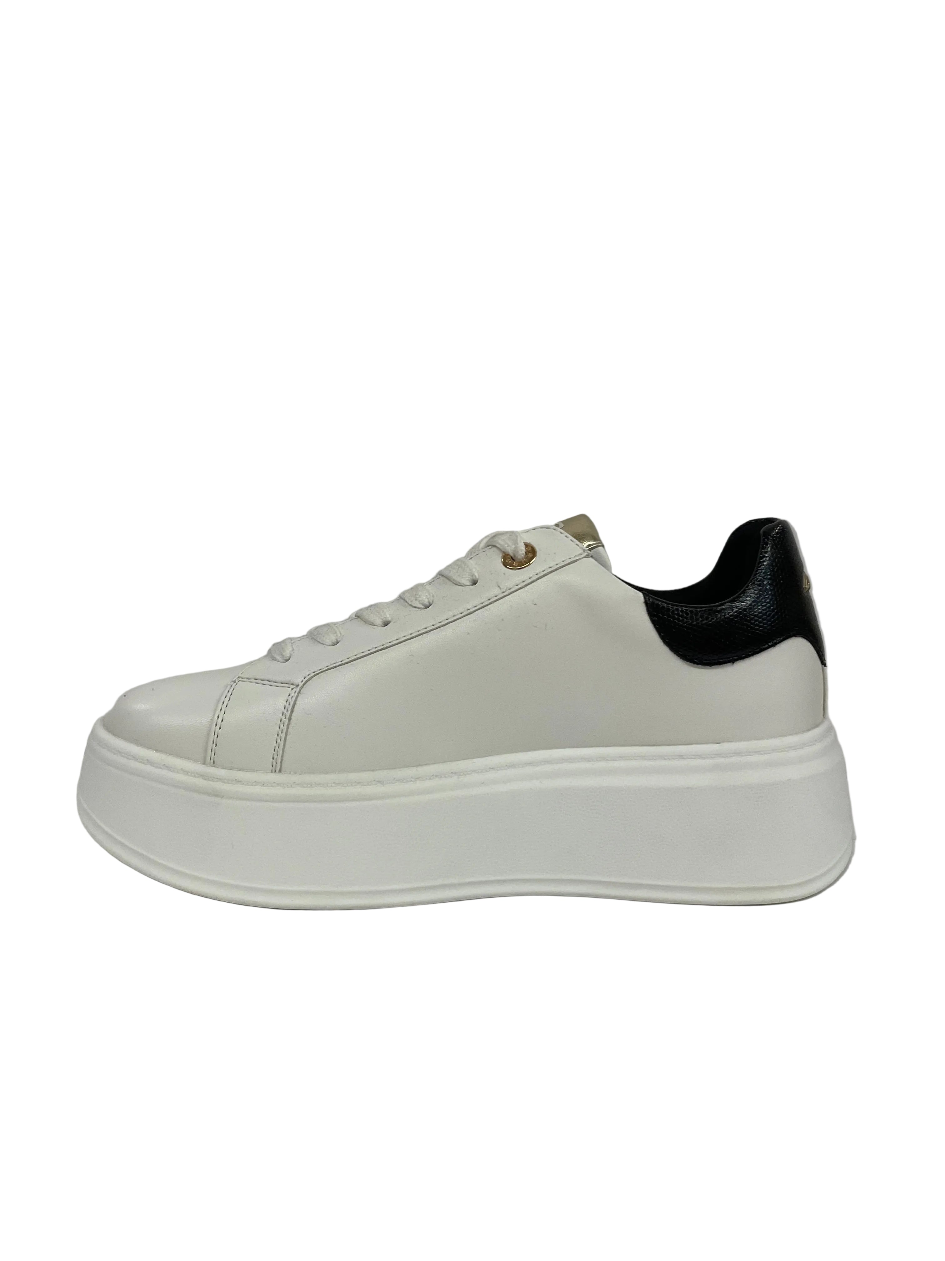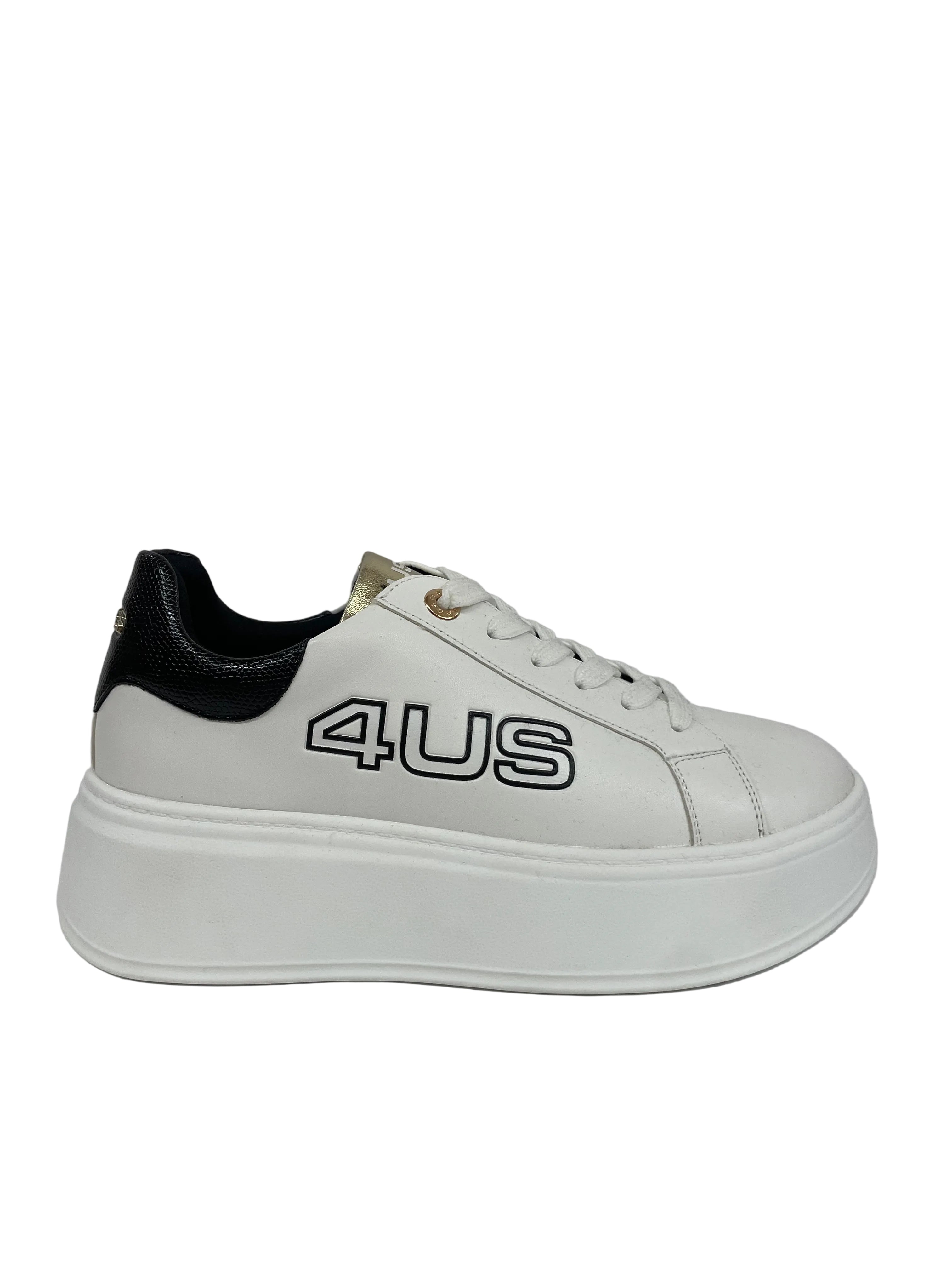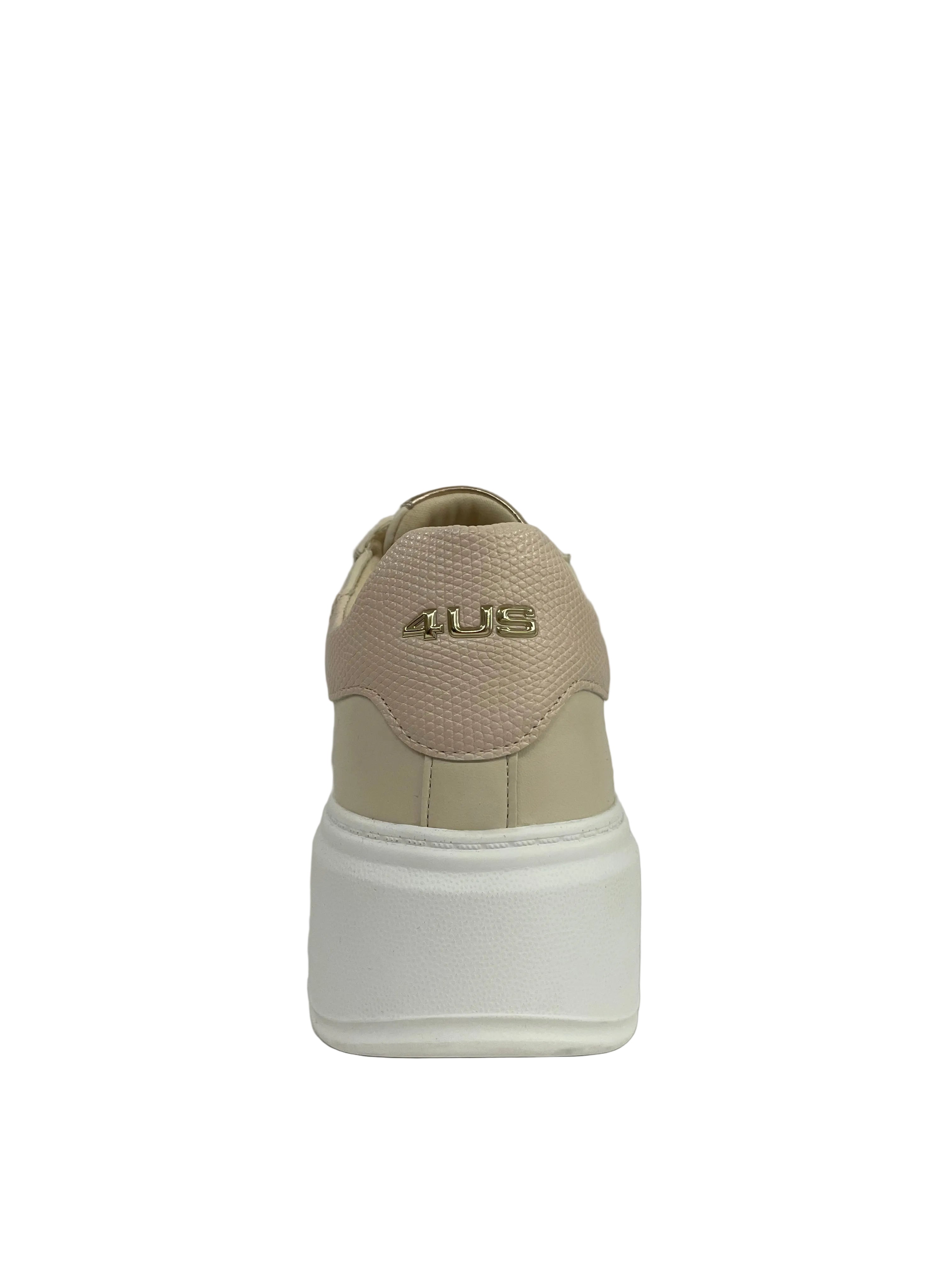 Queste sneaker firmate 4US Cesare Paciotti uniscono un design contemporaneo a un tocco glamour. Realizzate in pelle con un’audace suola platform "chunky", si distinguono per l'iconico logo laterale in rilievo e i raffinati dettagli metallizzati sulla linguetta. Caratterizzate da un elegante inserto testurizzato sul tallone, sono disponibili sia in una delicata tonalità crema con finiture dorate, sia in un classico bianco con contrasti neri.