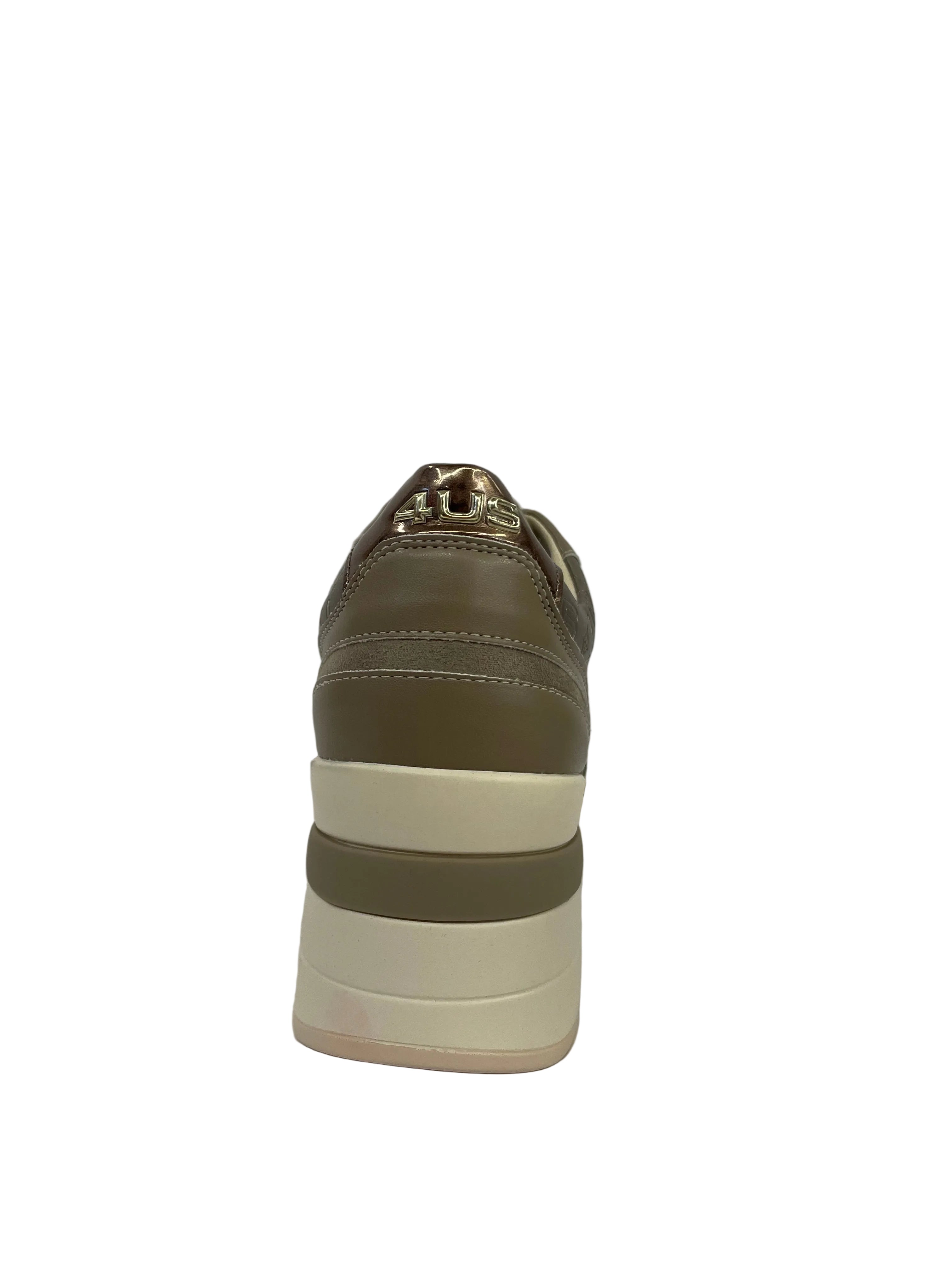 Versione Tortora: Un mix monocromatico di bronzo e suede, arricchito da dettagli metallici sul tallone per un look sofisticato.