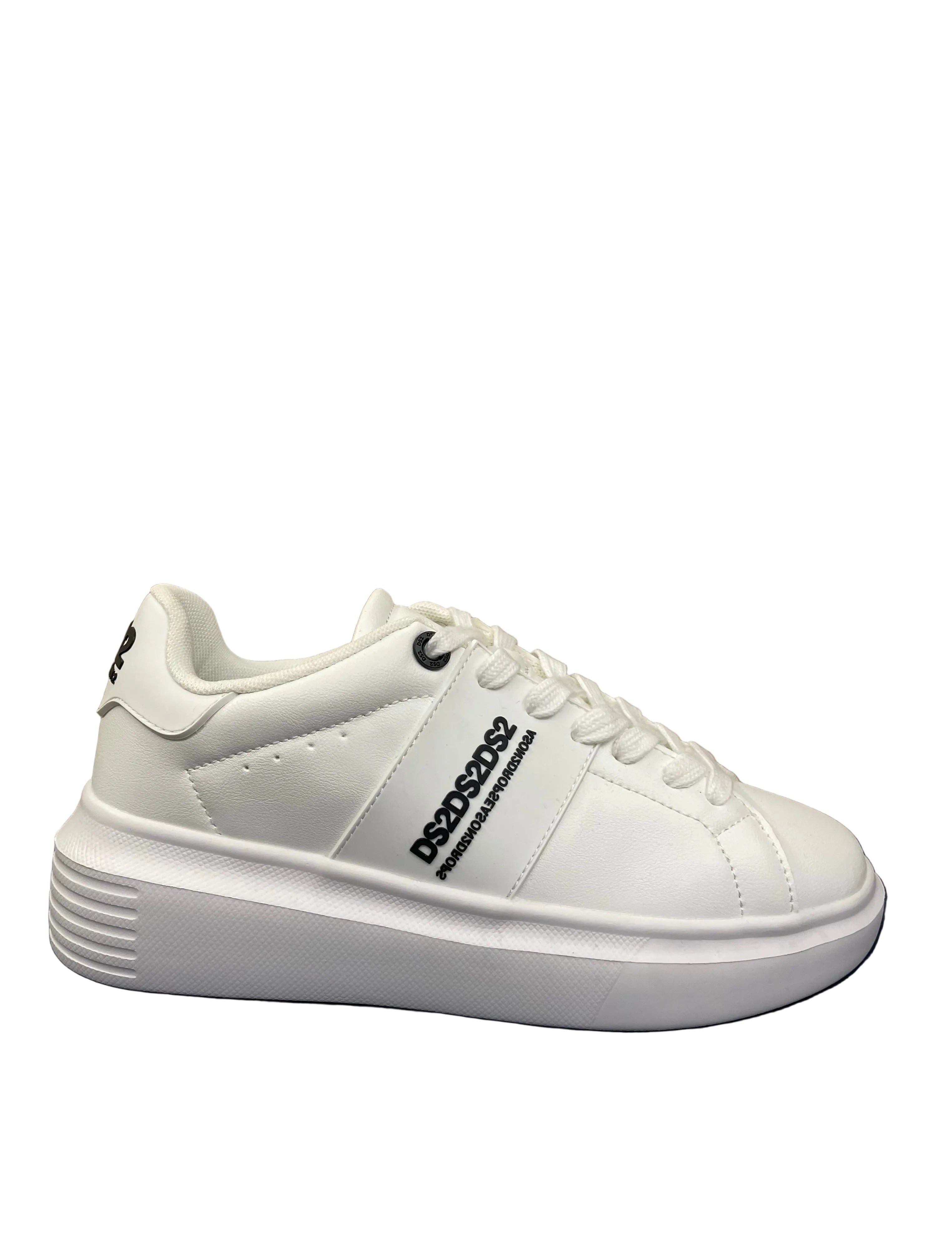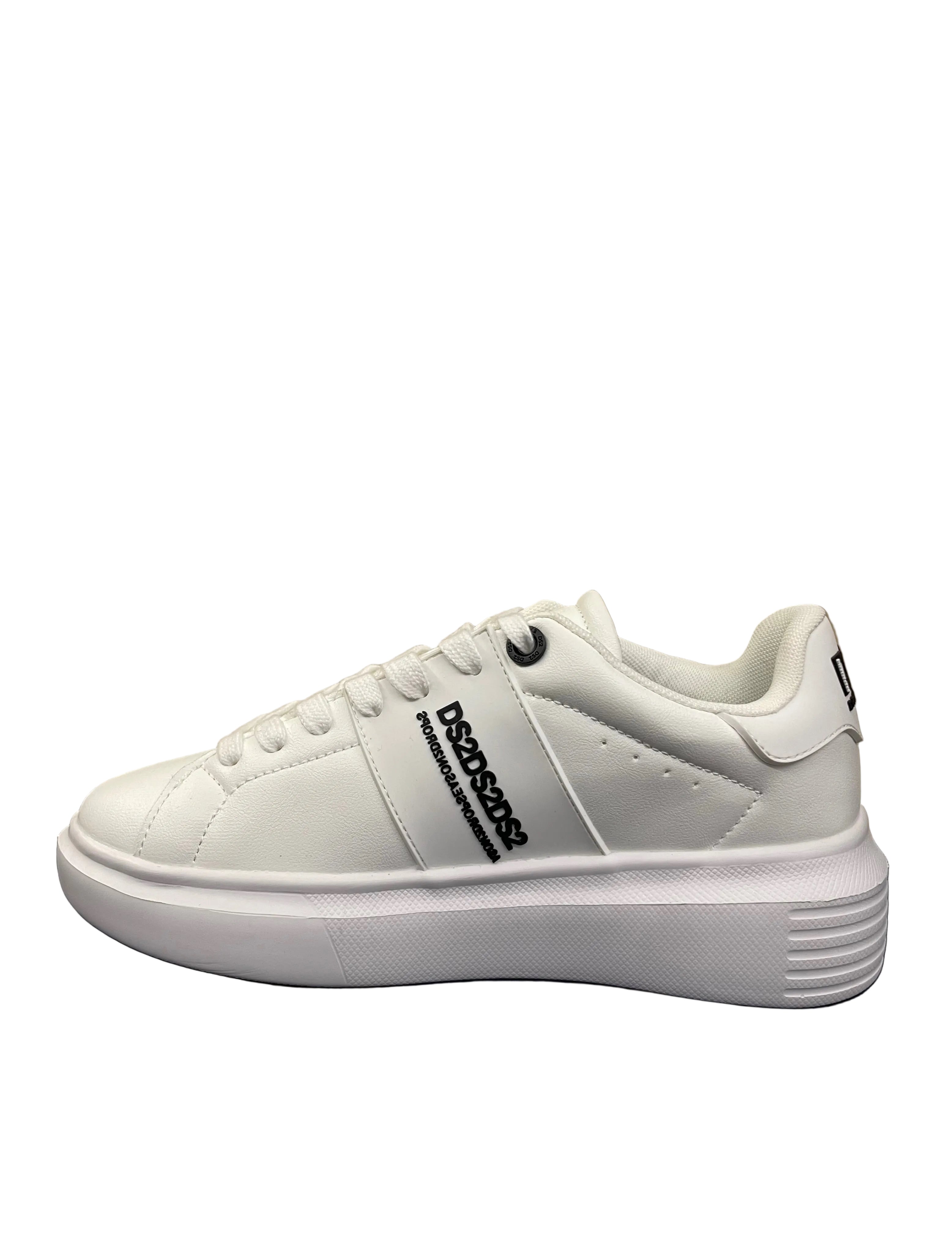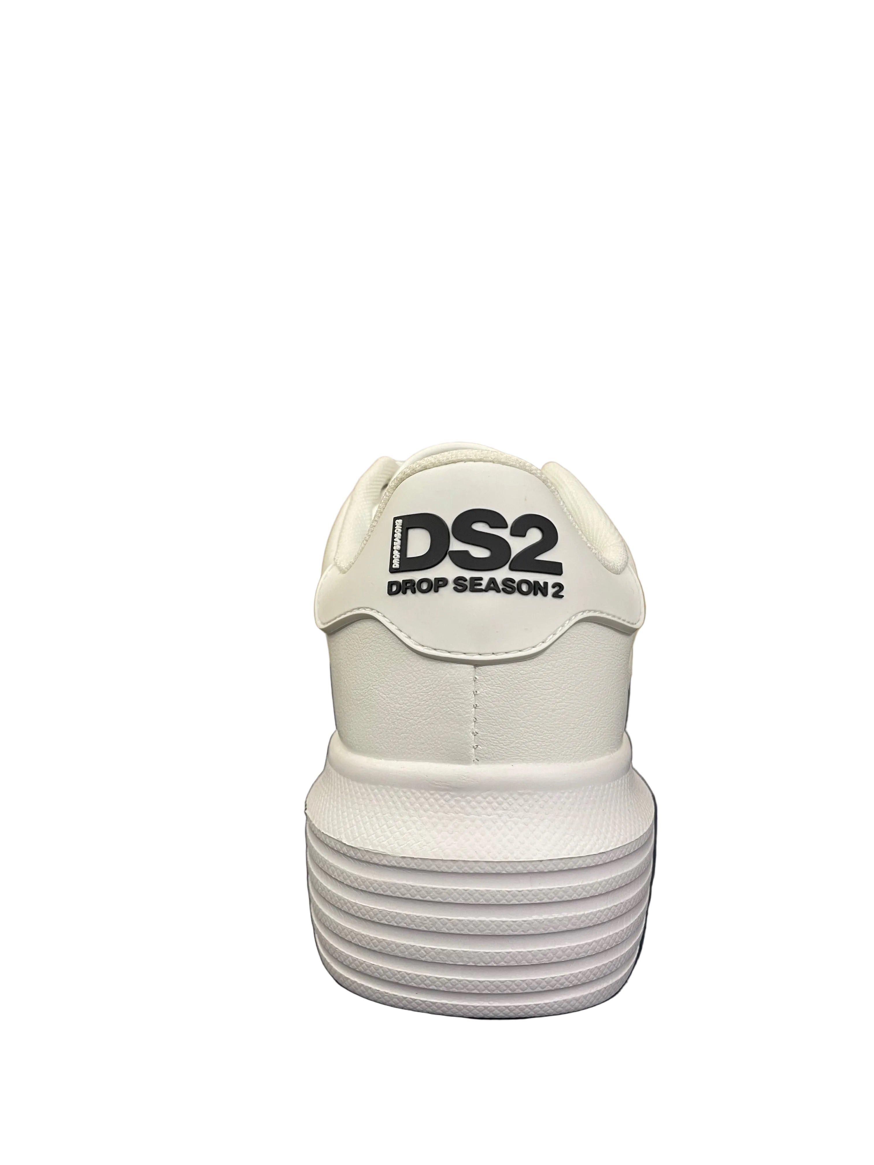 Eleva il tuo look quotidiano con queste sneakers DS2 dal design contemporaneo e audace. Caratterizzate da una silhouette pulita in pelle sintetica bianca, queste scarpe fondono perfettamente minimalismo e street culture.