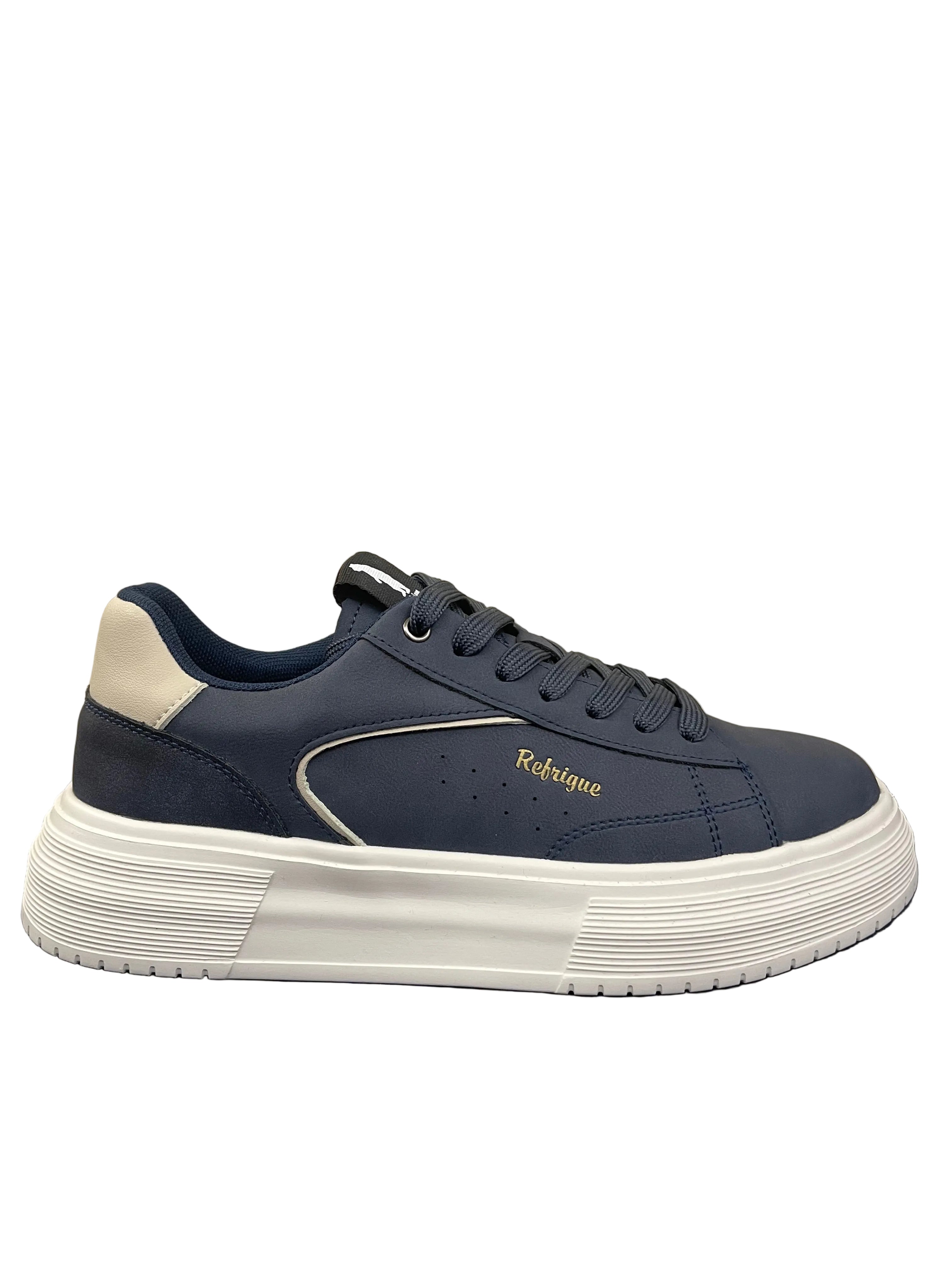 Eleva il tuo stile quotidiano con questa sneaker firmata Refrigue, il perfetto connubio tra estetica sportiva e design contemporaneo.