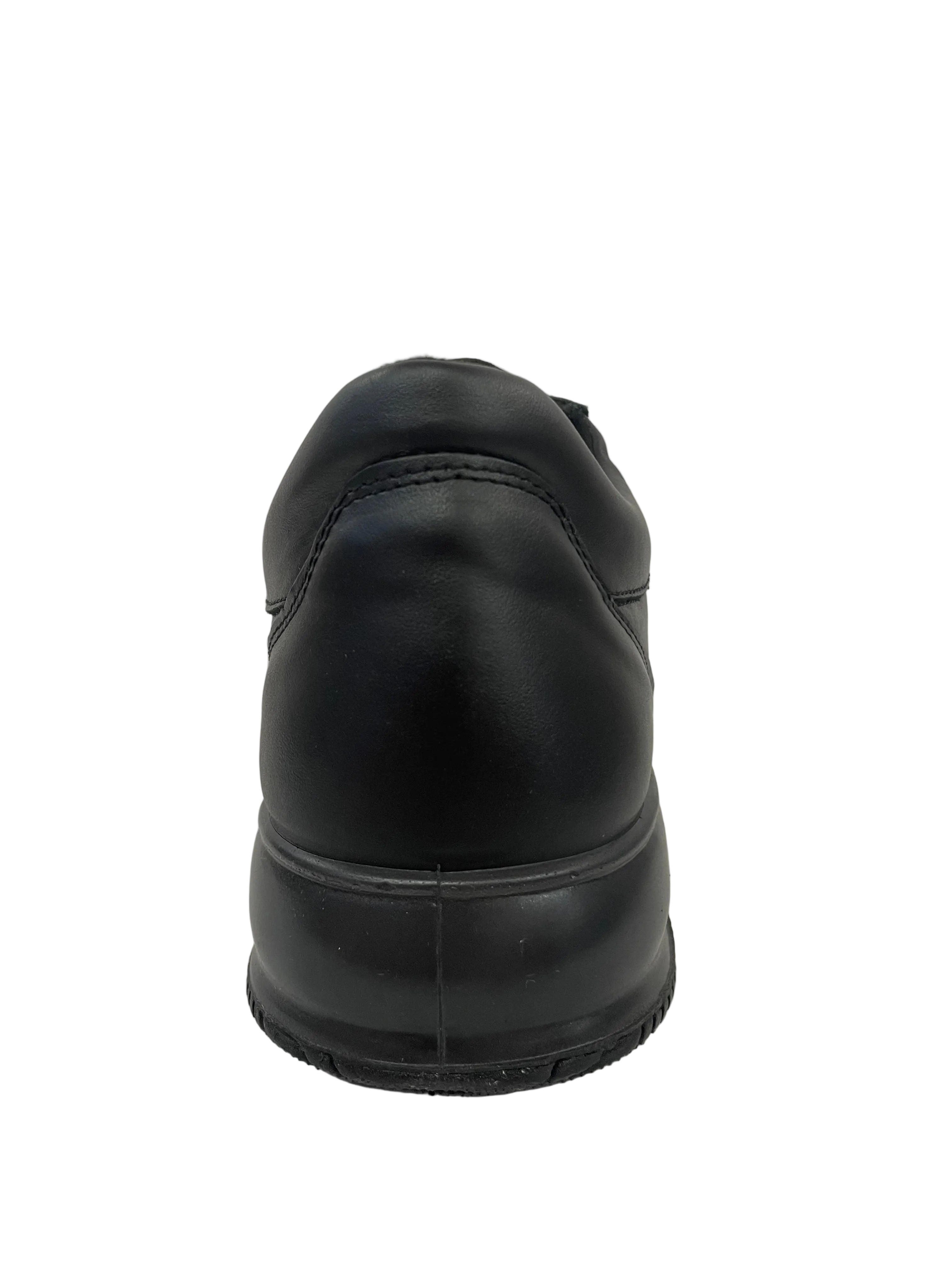 • Design e Materiali: Il modello si presenta come una scarpa stringata dal taglio sportivo ed elegante, realizzata in pelle in una raffinata tonalità nera. Le cuciture a vista tono su tono ne sottolineano la cura artigianale.
