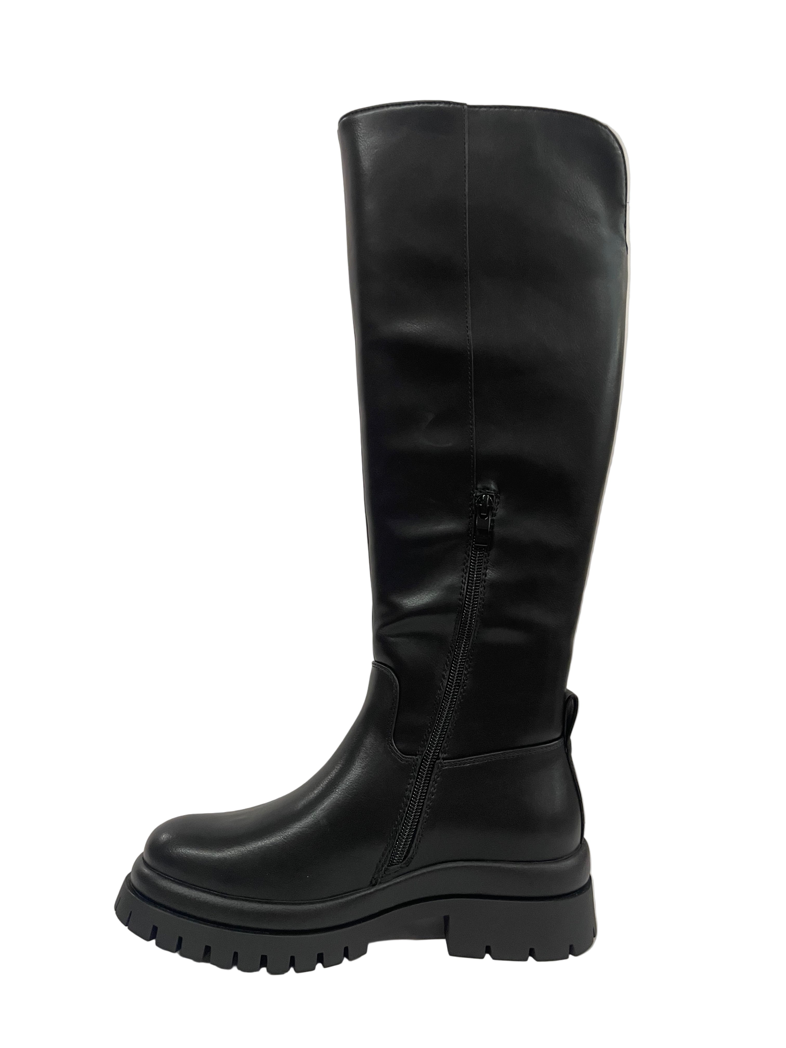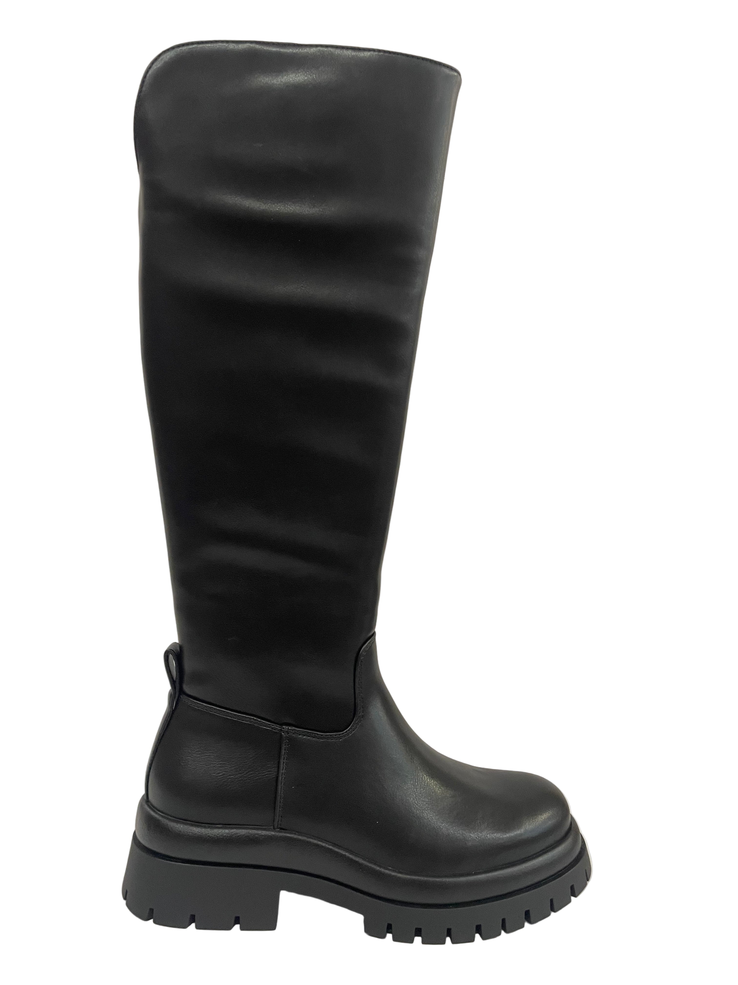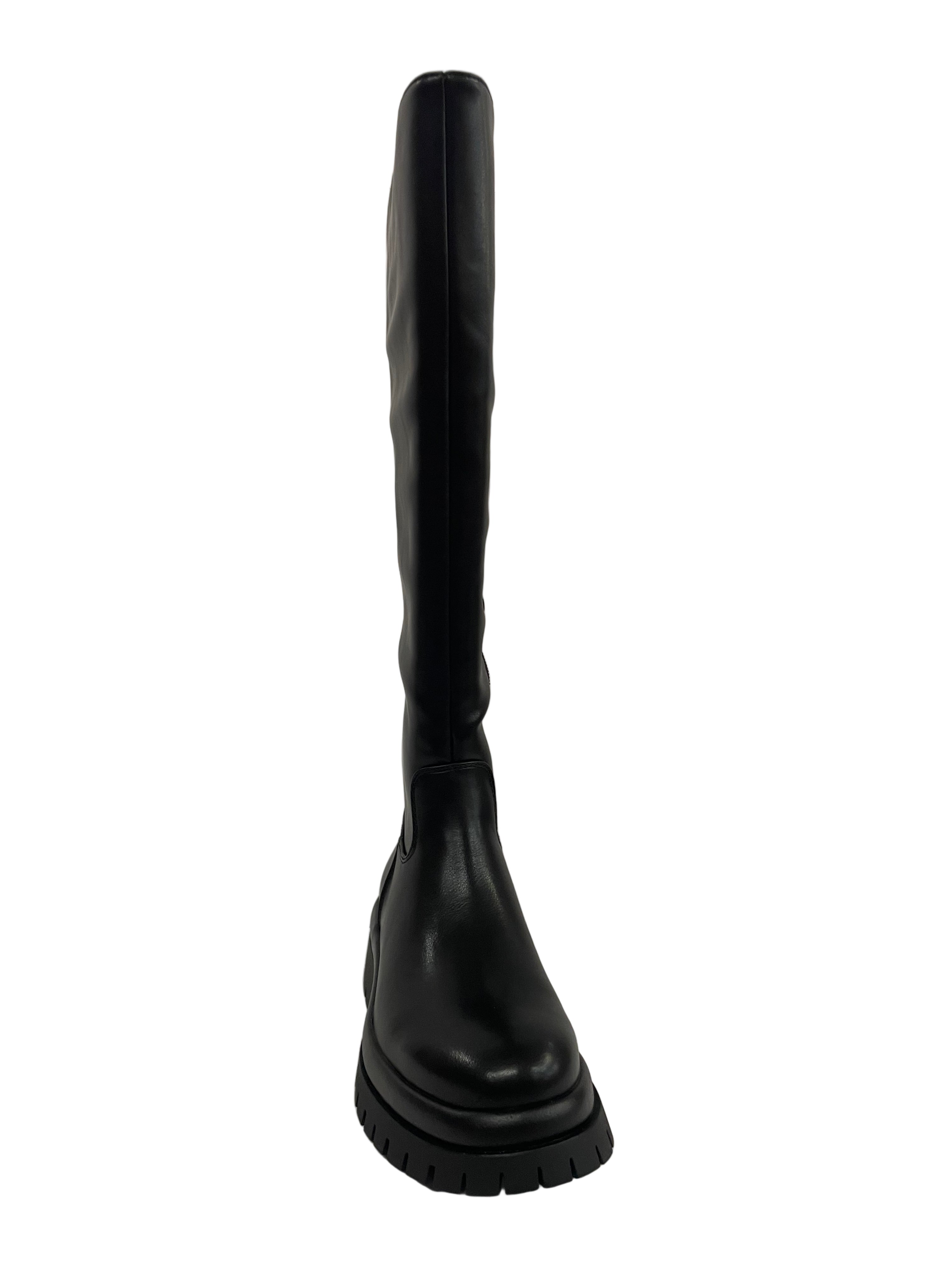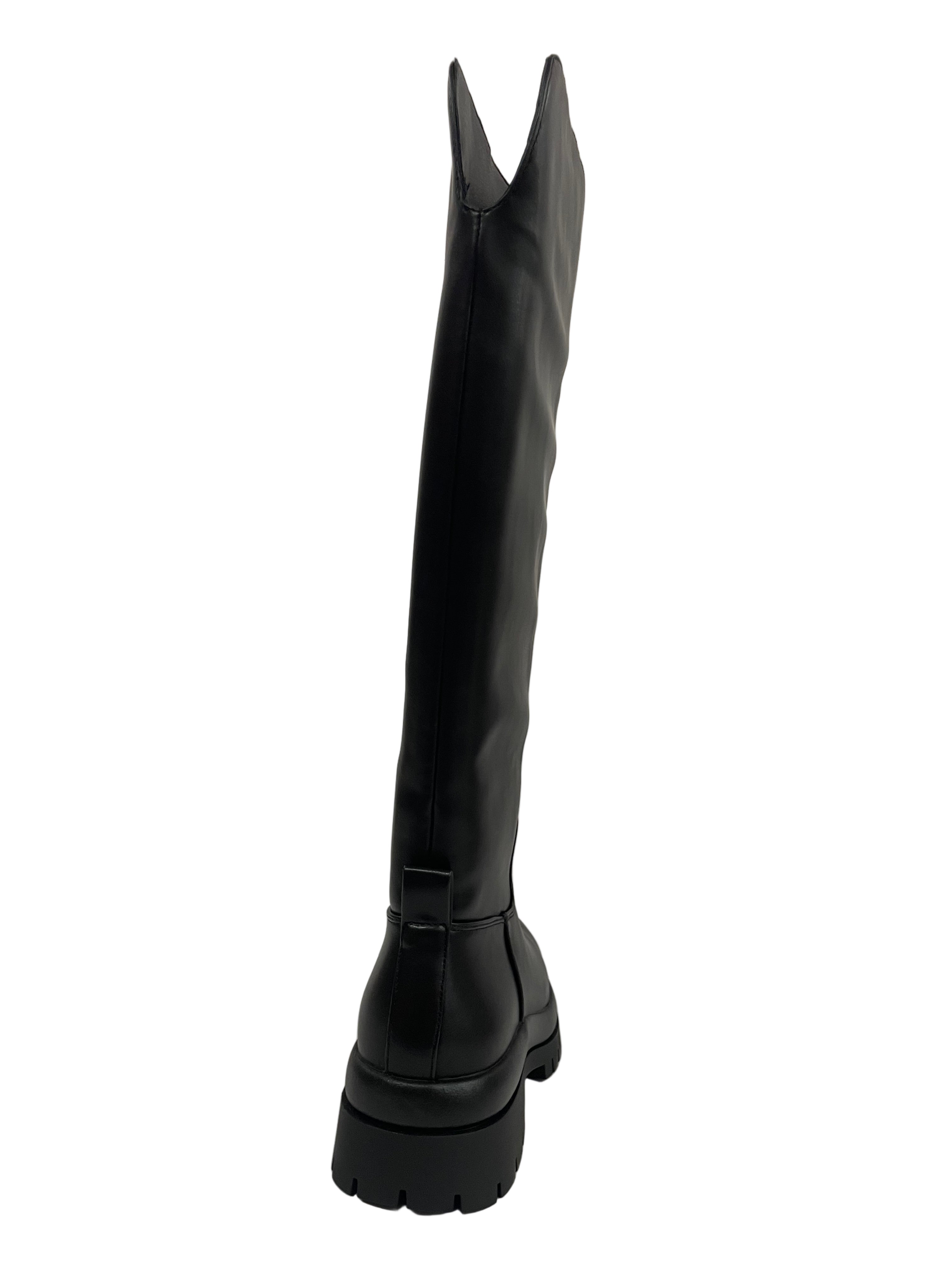Design Trendy: Stivale alto al ginocchio in ecopelle nera, perfetto per un look audace e di tendenza.