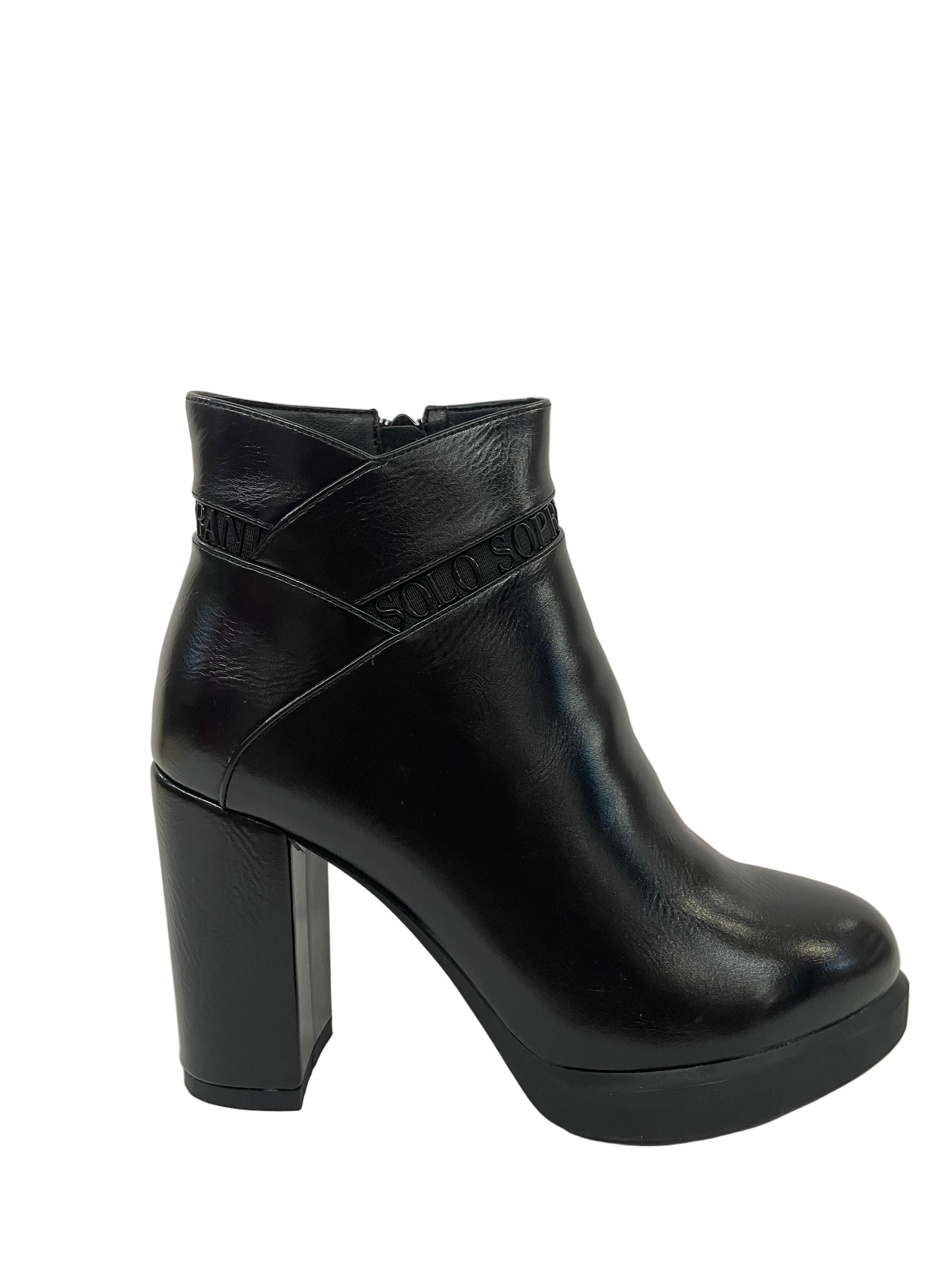 Design incrociato alla caviglia con fasce che riportano il logo/scritta "SOLO SOPRANI" in rilievo o stampato a contrasto.
